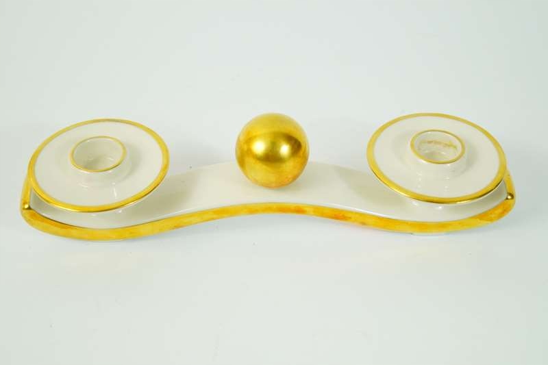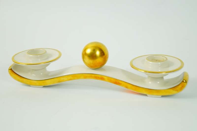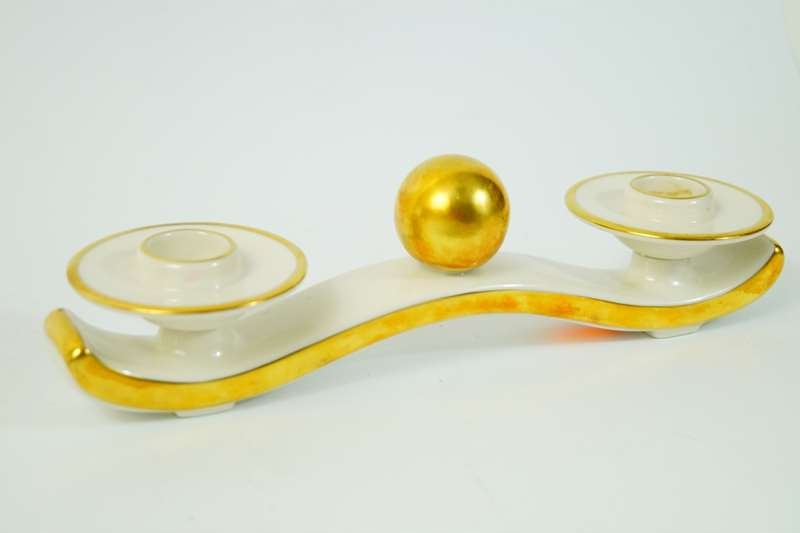 ФАРФОРОВЫЙ ПОДСВЕЧНИК LINDNER КРЕМ+ЗОЛОТО