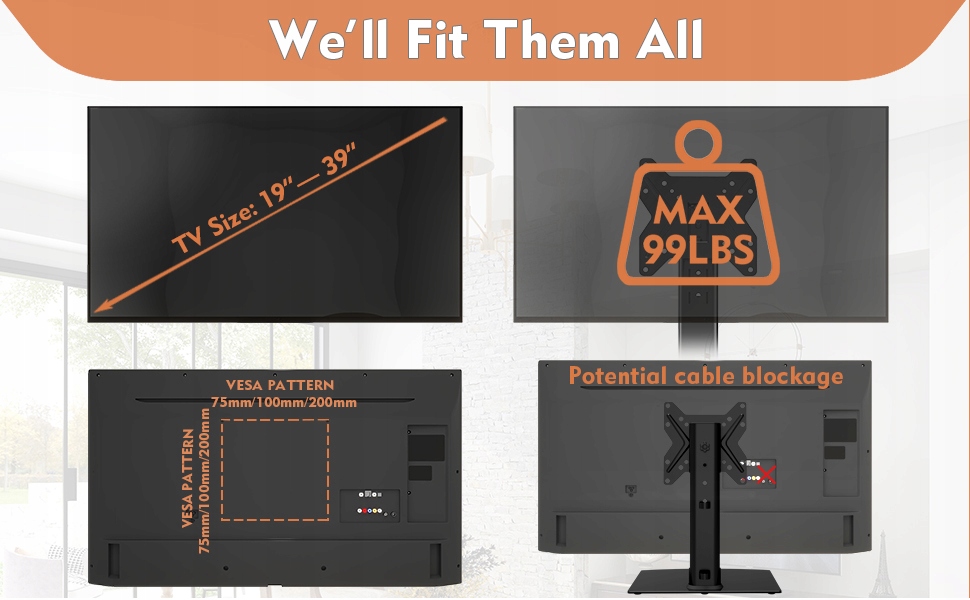 - СОВМЕСТИМОСТЬ ПОДСТАВКИ ДЛЯ ТЕЛЕВИЗОРА☞ Возможность Расширьте мою подставку, обеспечив универсальную совместимость с 19,21,23,27,32,37,39-дюймовым ЖК-телевизором со светодиодной подсветкой и плазменным плоским экраном.