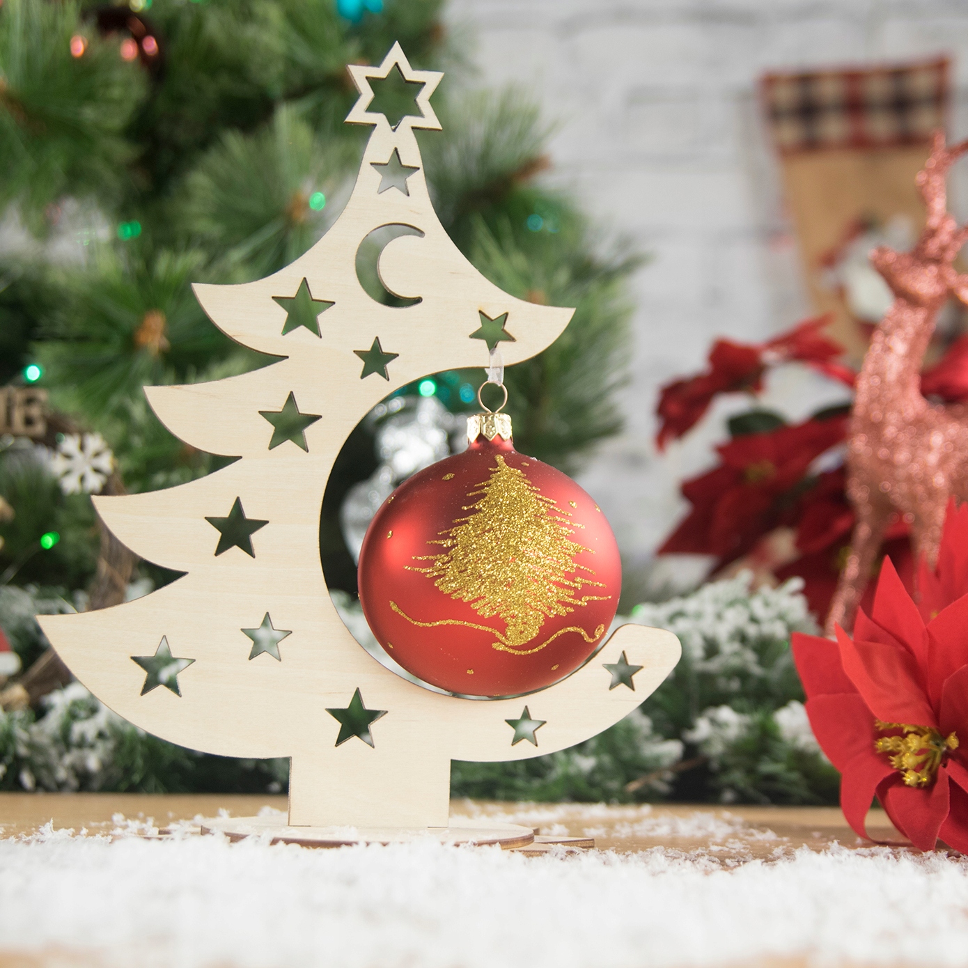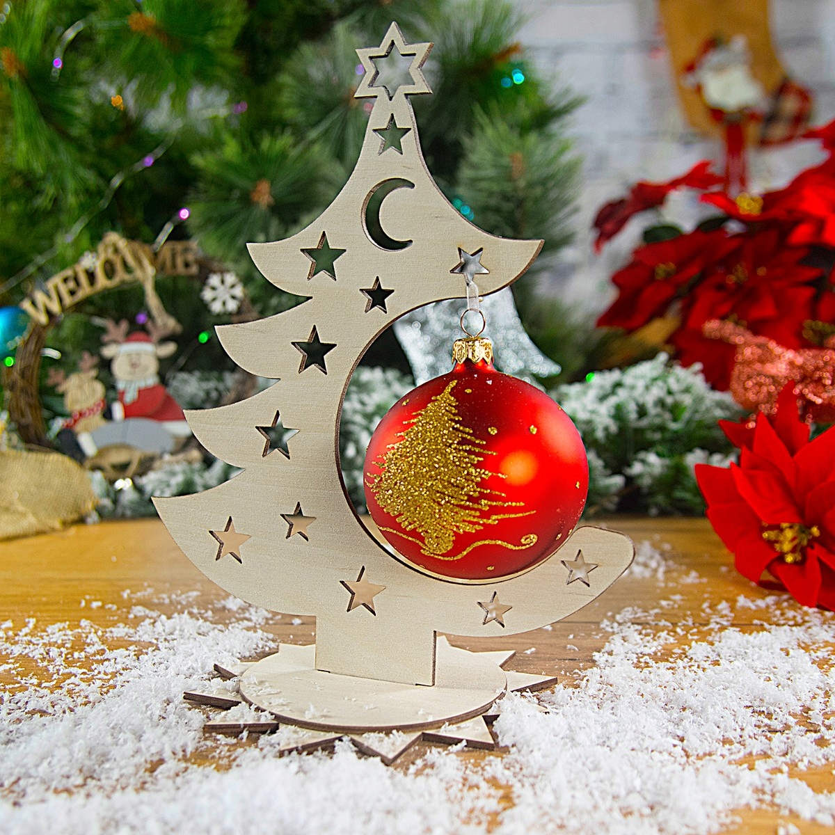 Деревянная подставка для эко елочной игрушки 25 см в декупаже