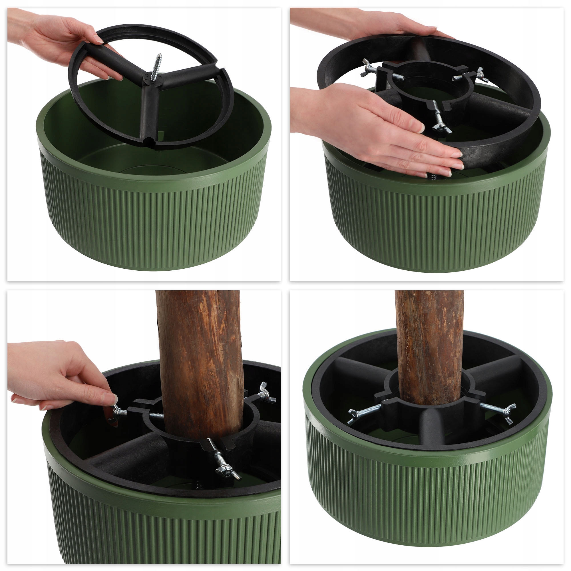 ✅ЛЕГКАЯ СБОРКА - подставка для елки имеетбарашковые винты для крепления елки >. Верхняя вставка представляет собой стабилизатор с барашковыми винтами, который следует надеть первым. Нижняя вставка имеет винт, который нужно вкрутить в центр нижней части ствола елки.