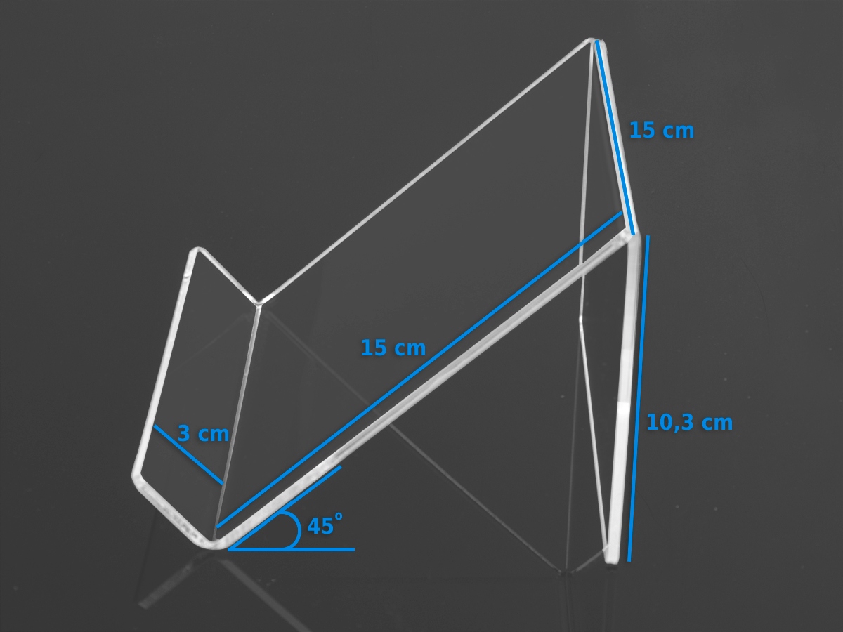 ПОДСТАВКА ПОДСТАВКА 15 см ПЛАНШЕТ Оргстекло 3 мм - угол 45°
