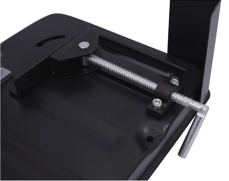 Стенд имеет систему быстрого крепления разрезаемых элементов. Кронштейн изготовлен из легкого и прочного алюминиевого сплава. В основании имеются отверстия для крепления к столешнице, так называемая ножки прорезиненные.