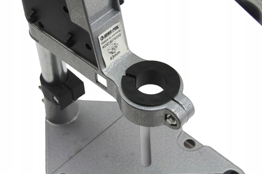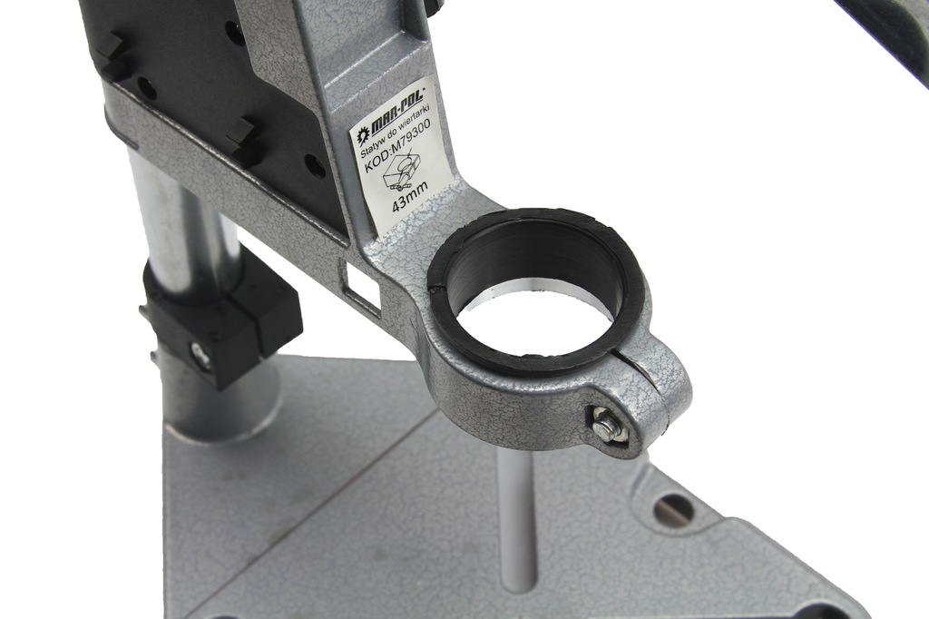 Стойка имеет универсальное крепление для большинства ручных дрелей 25–43 мм.