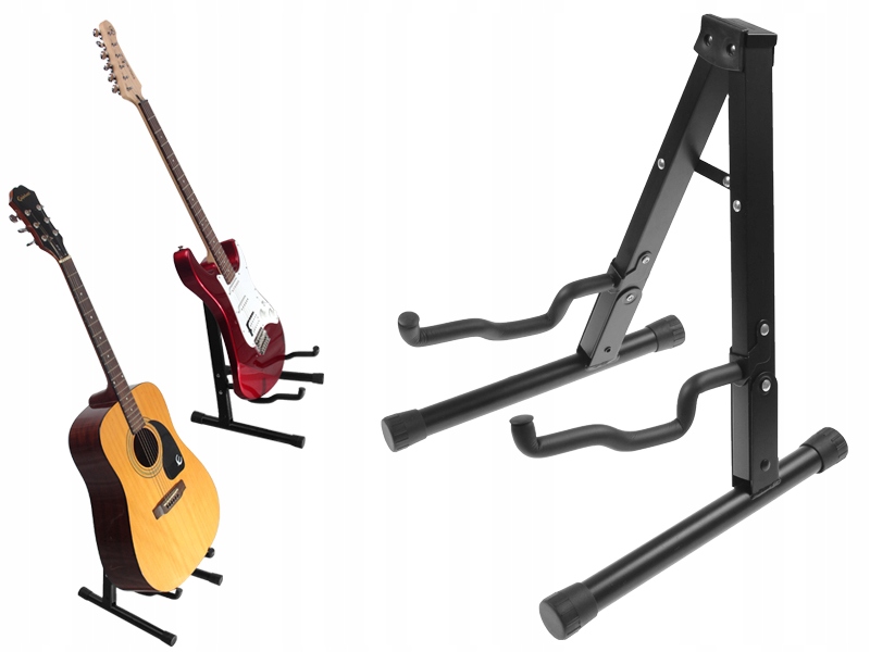 Удобная и прочная подставка для акустических, классических, бас-гитар и электрогитар, изготовленная из металла черного цвета. Он имеет устойчивую конструкцию и дуги, покрытые пеной, которая защищает гитару от царапин.