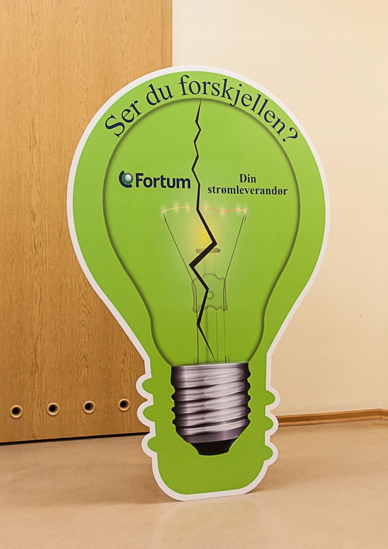 Пластиковая подставка с любым принтом, вырезанная по контуру, предназначена для демонстрации в помещении.