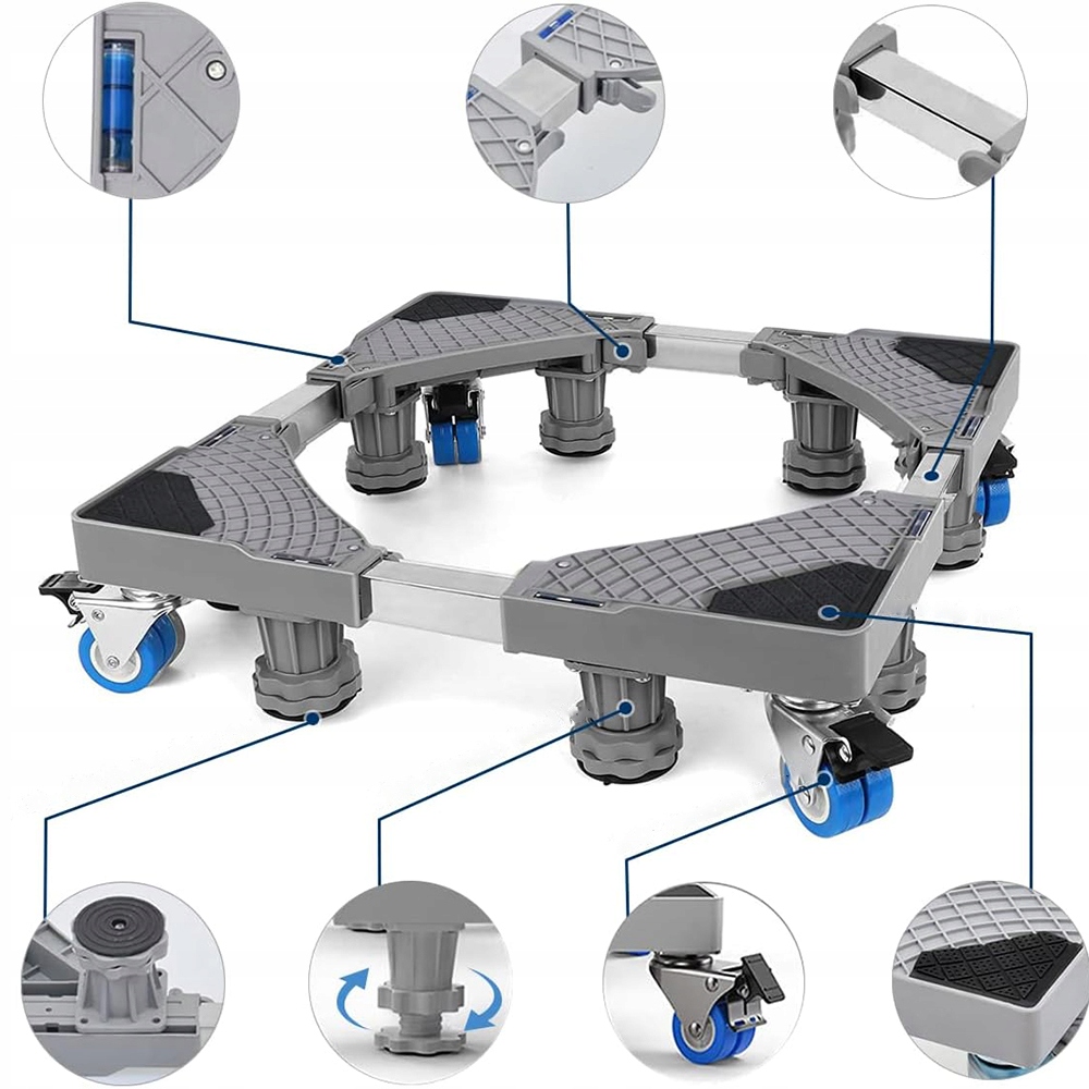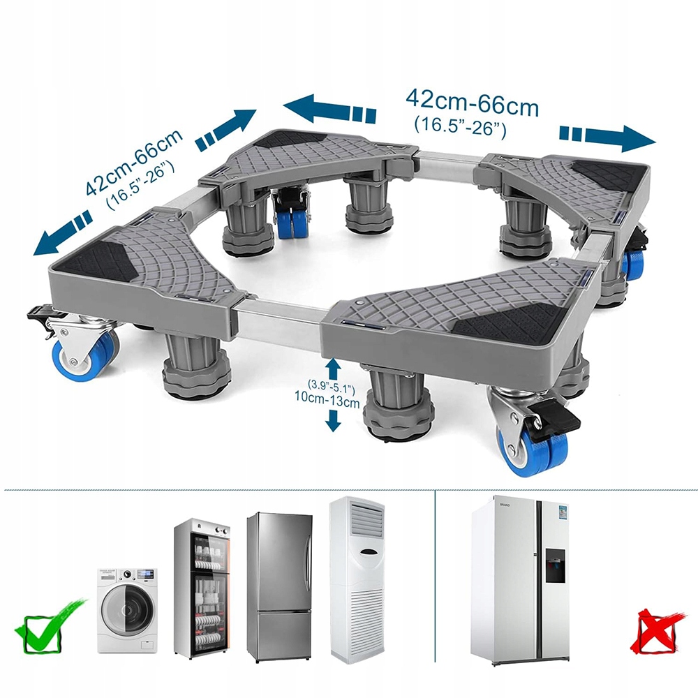 - Подходит для различной бытовой техники, такой как сушильные машины, стиральные машины, морозильники, холодильники, шкафы, кондиционеры и т. д. Поворотные ножки увеличивают высоту устройства, обеспечивая вентиляцию, защиту от влаги, предотвращая появление ржавчины, облегчая чистку и продлевая срок службы устройства.