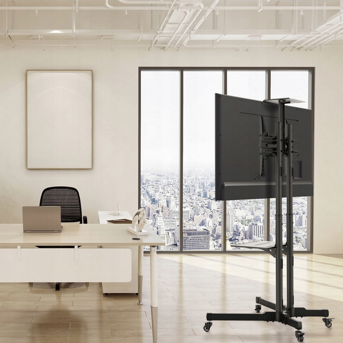 штатив оснащен четырьмя крутящими колесами , которые облегчают перемещение телевизора в любое место ✔. После того, как вы установите экран в оптимальном положении, вы можете блокировать колеса , обеспечивая полную стабильность структуры. Стальная рама, окрашенная в порошок гарантирует прочность и сопротивление царапинам , что означает, что штатив будет служить в течение многих лет ✨. Благодаря солидной конструкции и вдумчивому дизайну , штатив будет работать как в офисном помещении, так и дома, либо на мероприятиях.
