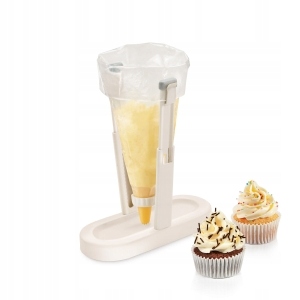 Идеально подходит для наполнения полиэтиленовых пакетов продуктами и украшения кремами, регулируется по высоте от 12 до 20 см. Подставка изготовлена из прочного пластика с нескользящим покрытием. Легкое хранение. Следует мыть под проточной водой.