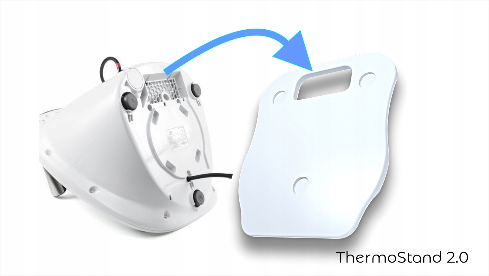Подставка ThermoStand 2.0 представляет собой улучшенную версию известной и популярной на рынке подставки для устройства Thermomix. Новым является инновационная конструкция подставки, которая обеспечивает лучшую циркуляцию воздуха под устройством, предотвращая его перегрев. Кроме того, форма ручек была улучшена и стала более эргономичной.