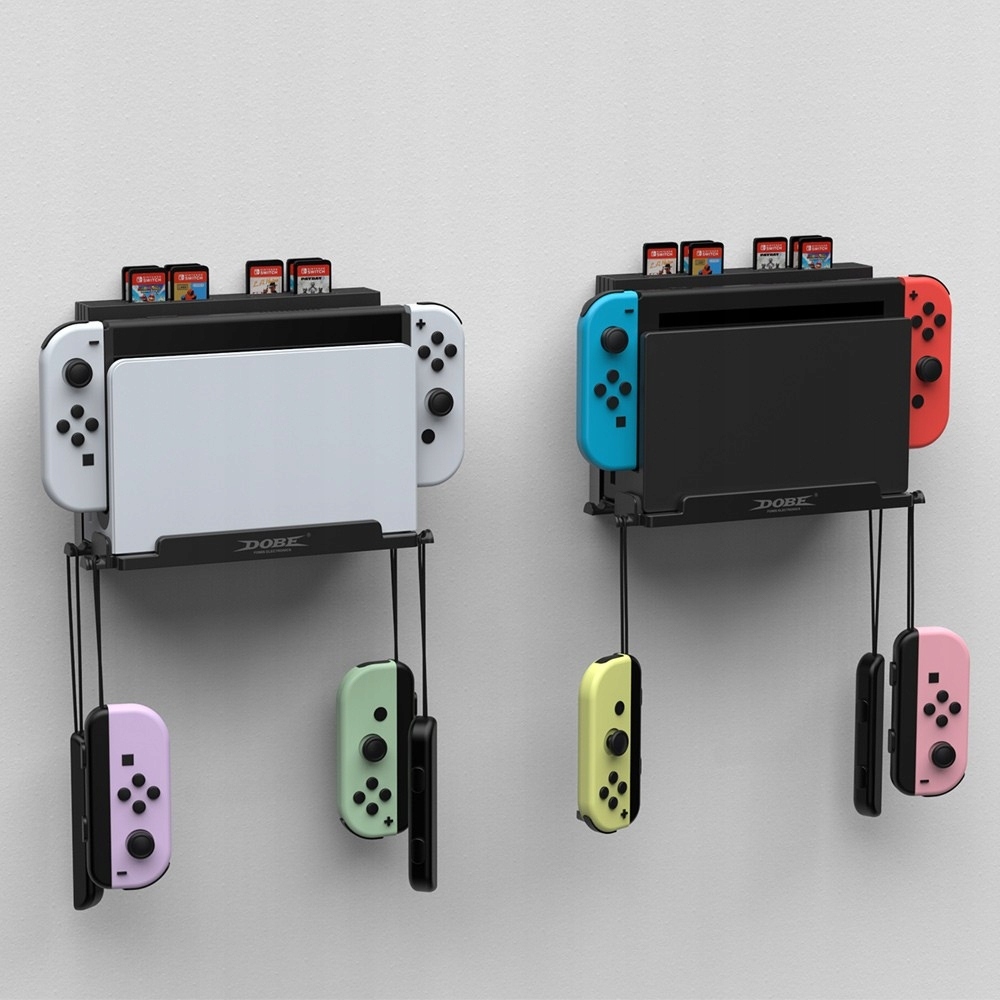 Металлический настенный держатель для консоли Nintendo Switch/OLED+ с местом для 4 пэдов и 28 игр от Dobe, модель TNS-3118 - получите больше места, порядок и стильный вид для вашей игровой станции.