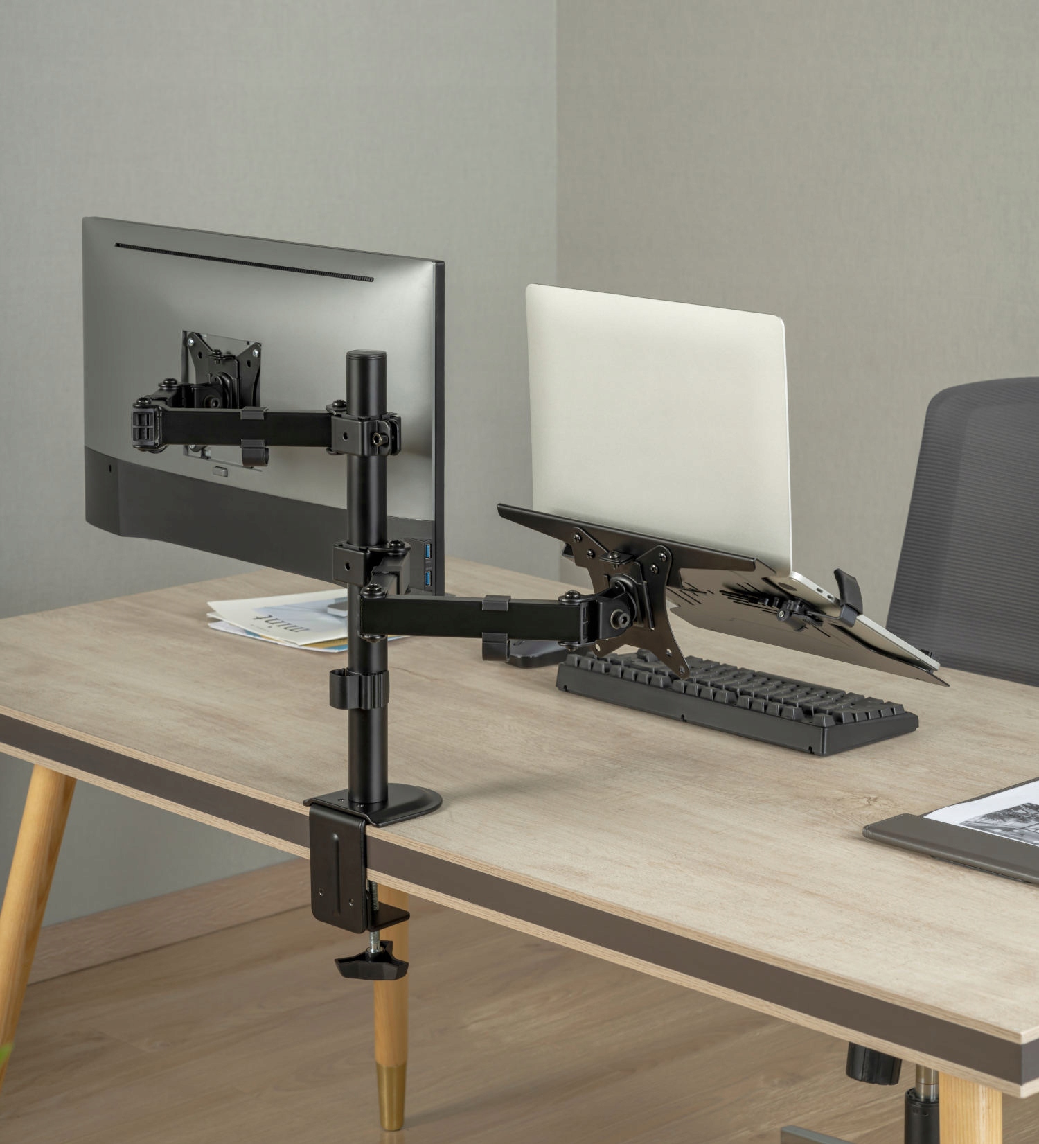 Держатель Mozos DS-LM позволит вам комфортно работать за монитором и ноутбуком.