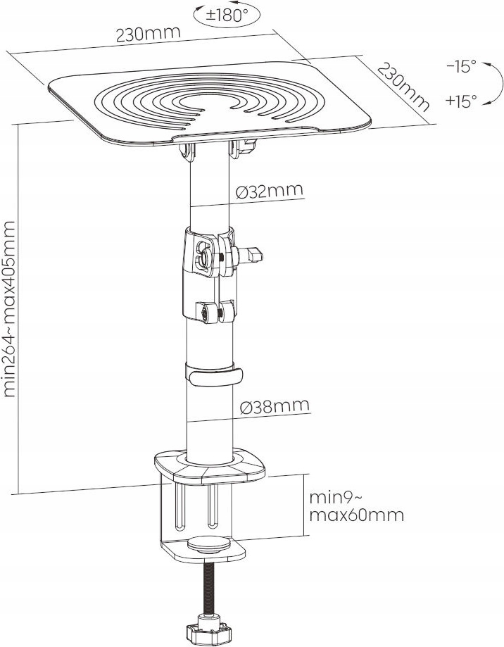 - Диапазон наклона: +15°~-15°