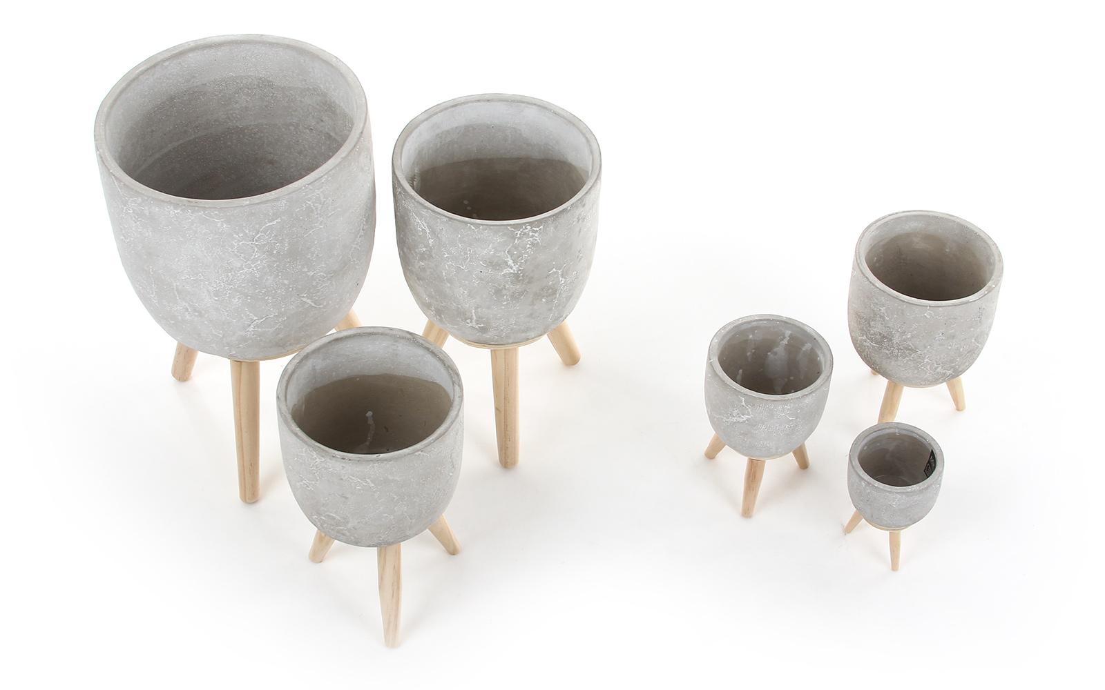 Декоративный круглый вазон с цементной отделкой на деревянных ножках.