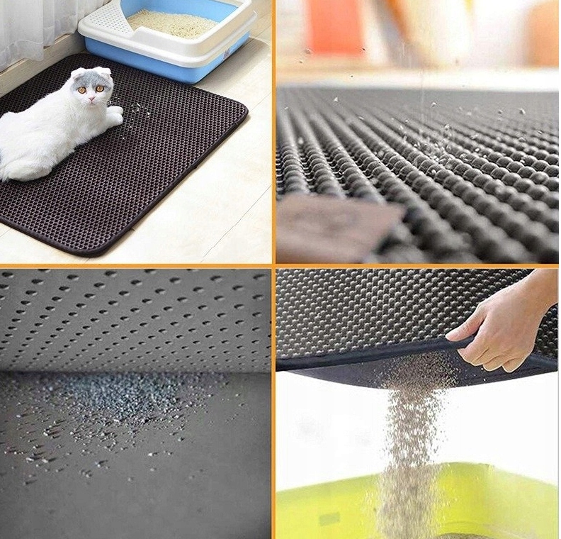 Двухслойный гигиенический коврик эффективно удерживает наполнитель, остающийся на лапах кошки, когда она покидает туалетный лоток. Частицы гравия и другие примеси попадают в отверстия и летят на внутренний слой мата. Просто поставьте его рядом с туалетным лотком, чтобы кошка не разбрасывала грязный наполнитель по комнате.