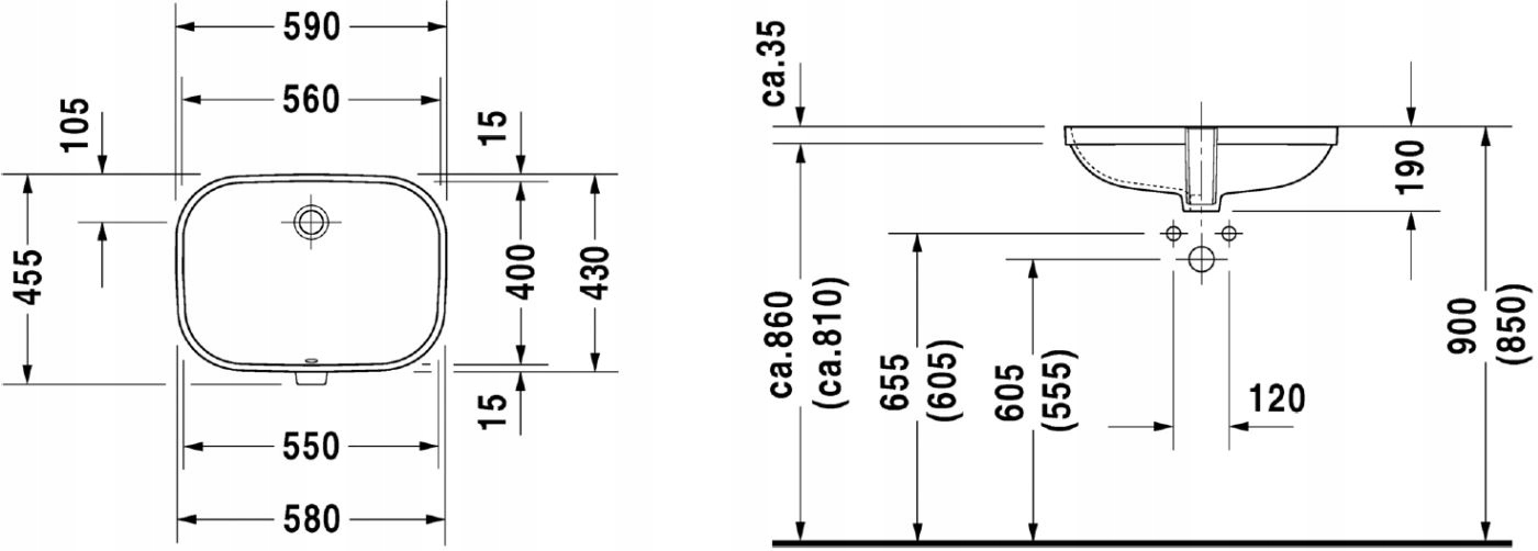 РАКОВИНА DURAVIT D-CODE 56X40 СМ ПОД СТОЛЕШНИЦОЙ