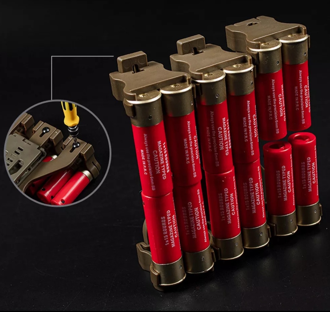 Представленный подсумок предназначен для удобного ношения 12 патронов для дробовика, обычно используемого в спортивных целях, хотя его можно использовать и для охоты.