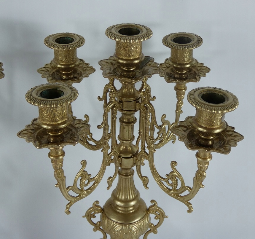 ПОДСВЕЧНИК, пара канделябров, 5 свечей, цветок из латуни, виноград 41 см.