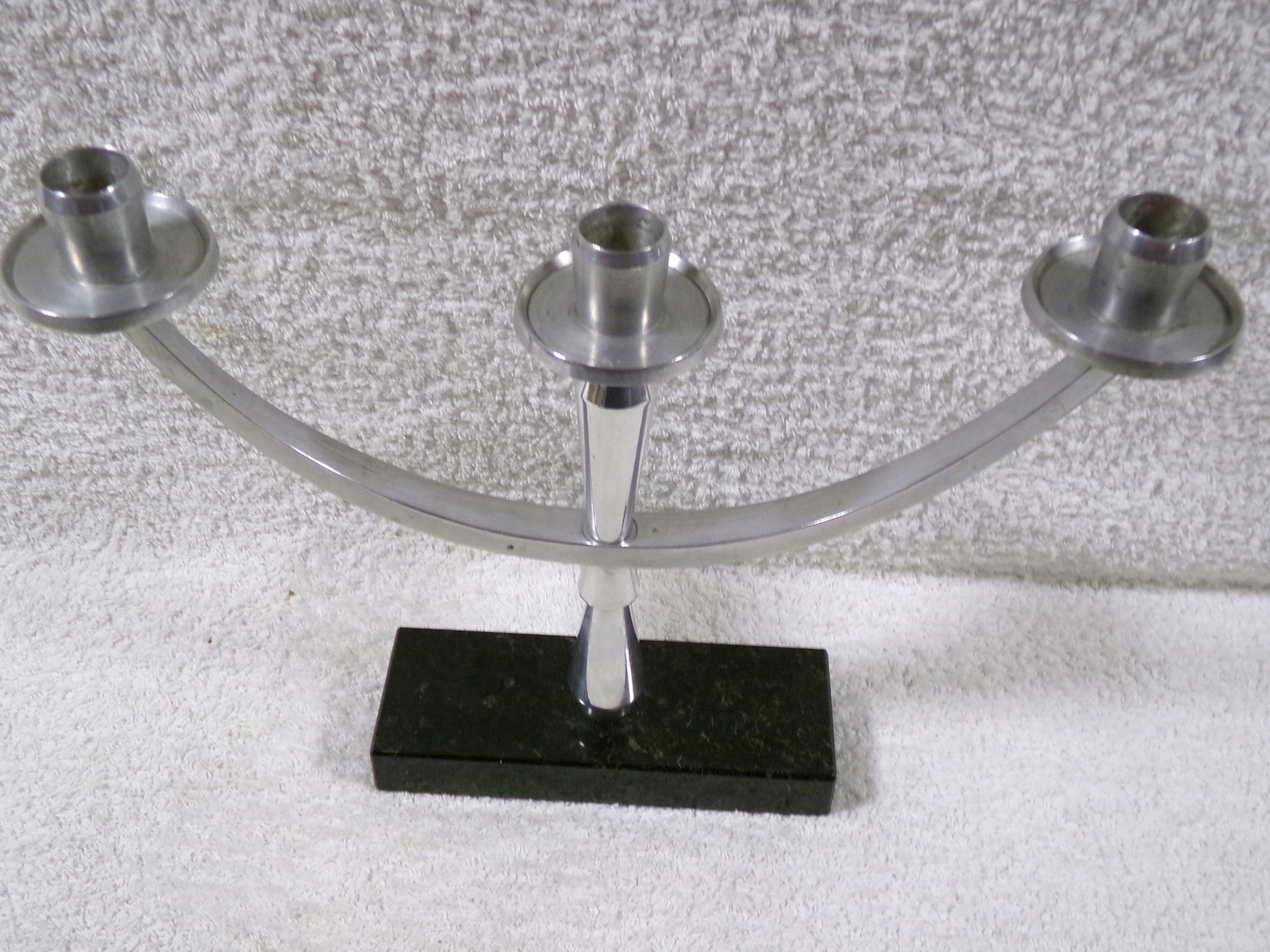 Красивый алюминиевый подсвечник на мраморном основании, размеры 29,5х5х22,5 см, вес 0,74 кг. В очень хорошем состоянии, без повреждений.
