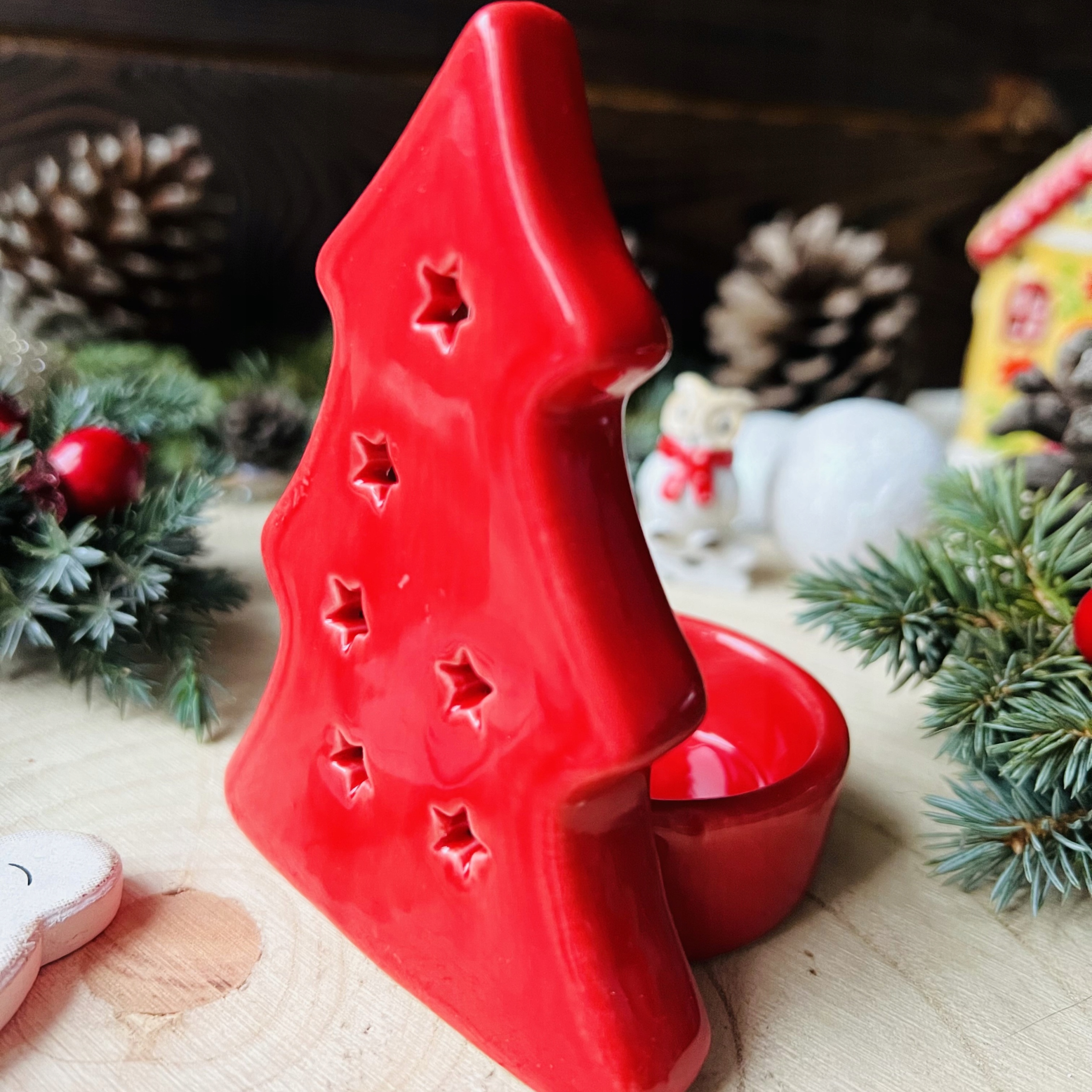 Рождественский подсвечник для елки — праздничное сияние и украшения в красном фарфоровом рождественском подсвечнике!