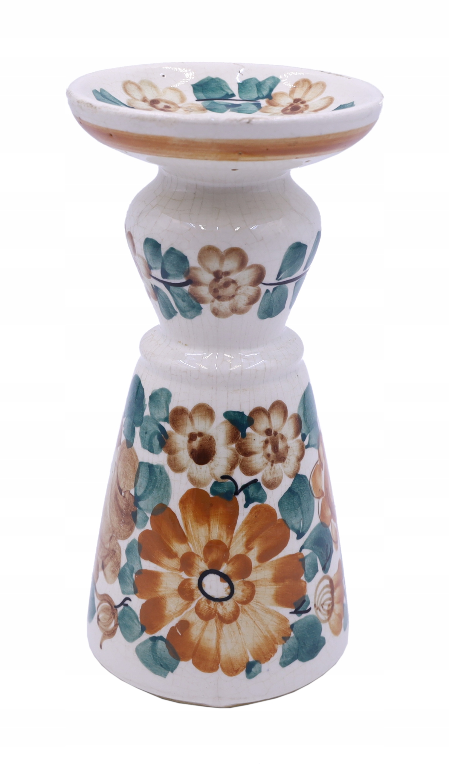 Фаянсовый подсвечник из Влоцлавека 1970-1980-х годов. Подписано. Ручная роспись Ирены Домбровской. Следы использования. Размеры: высота 20,5 х 10,5 см. Рекомендую.