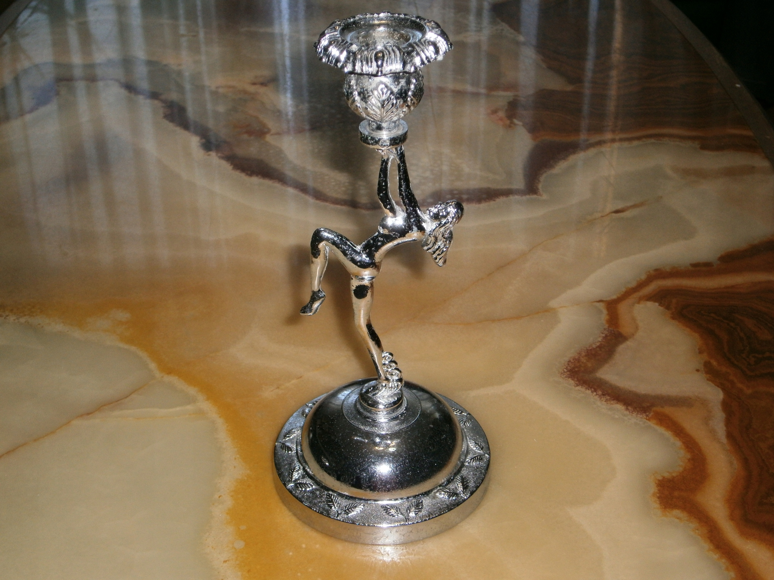 Хромированный подсвечник обнаженной леди в стиле ар-деко