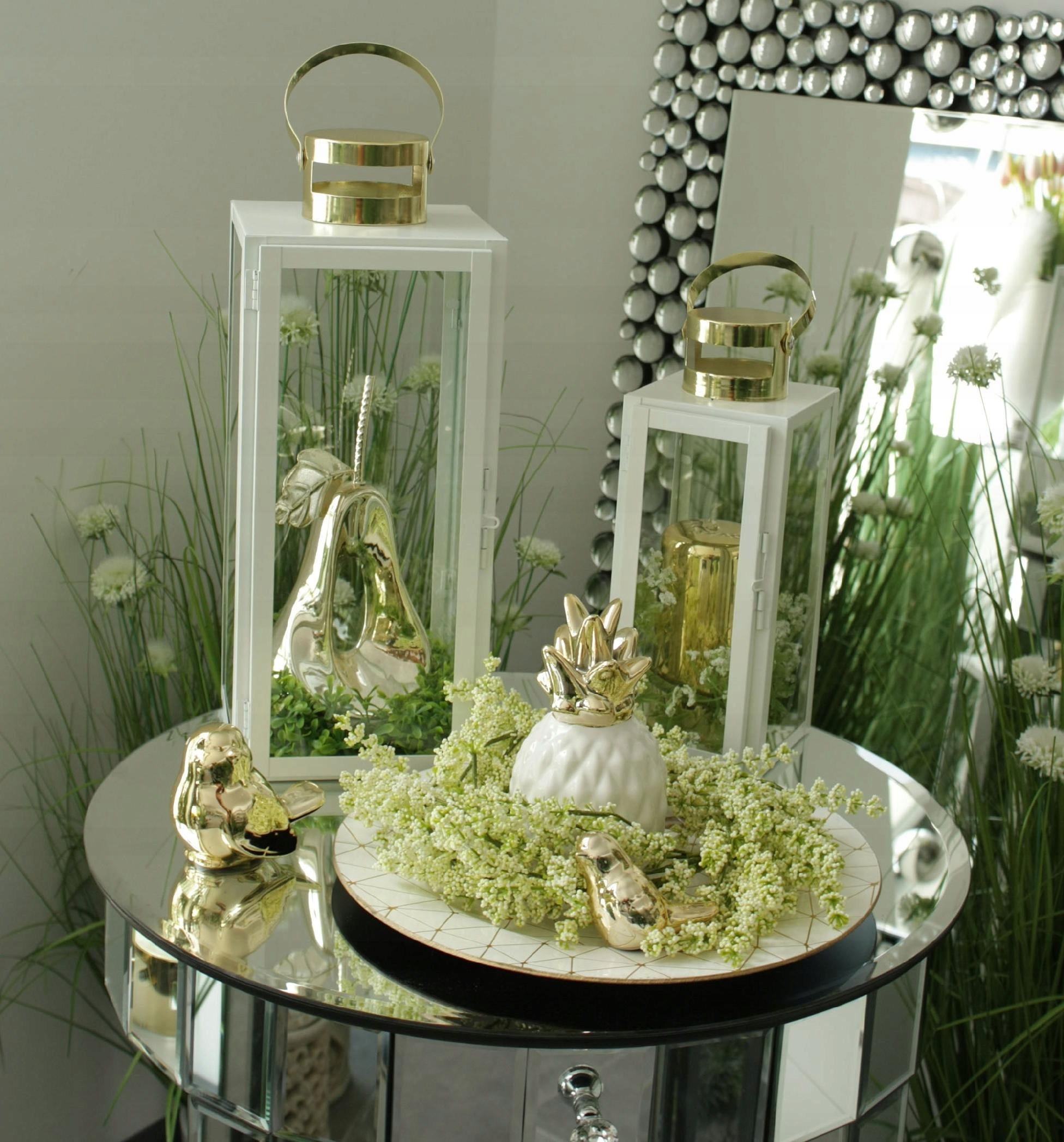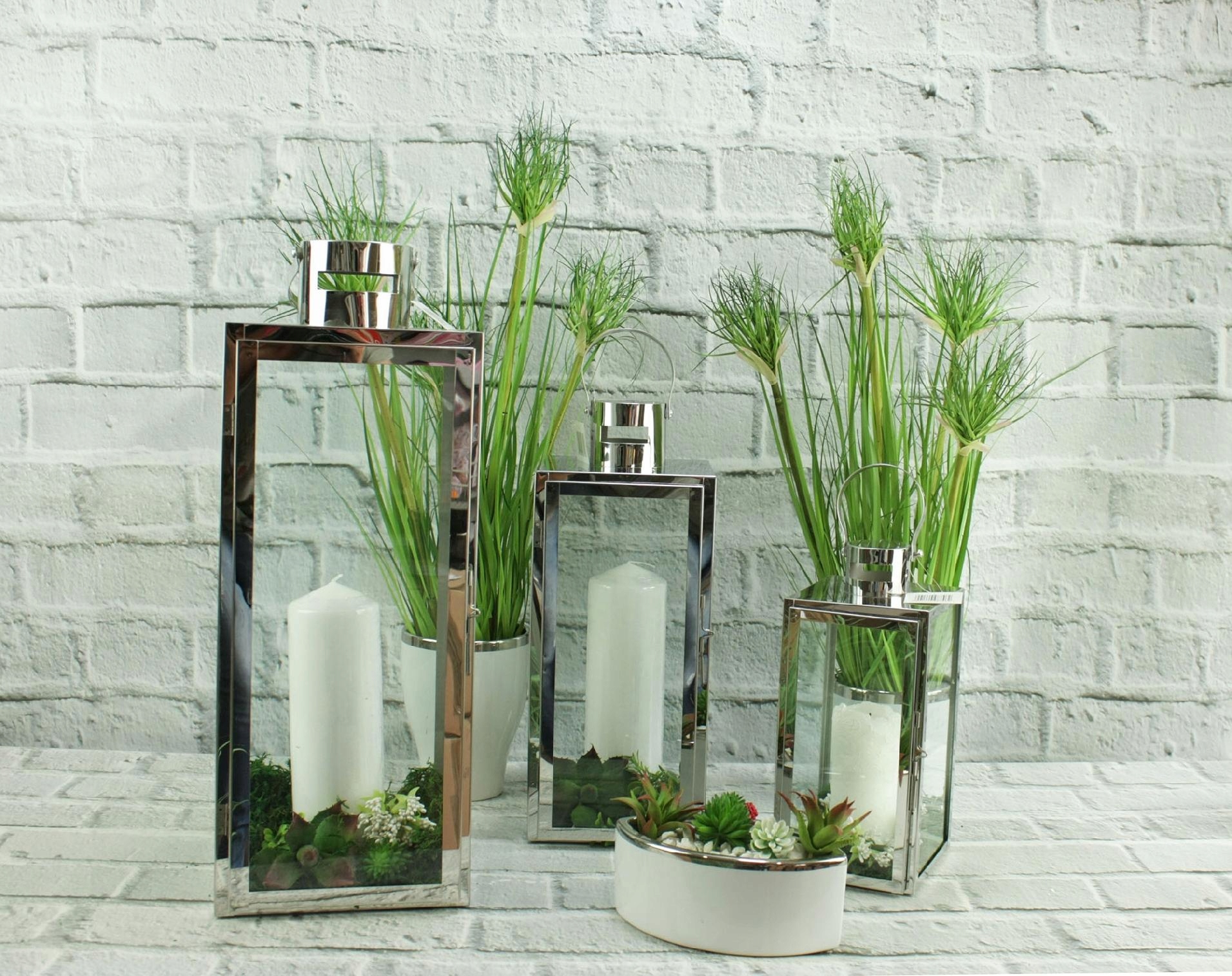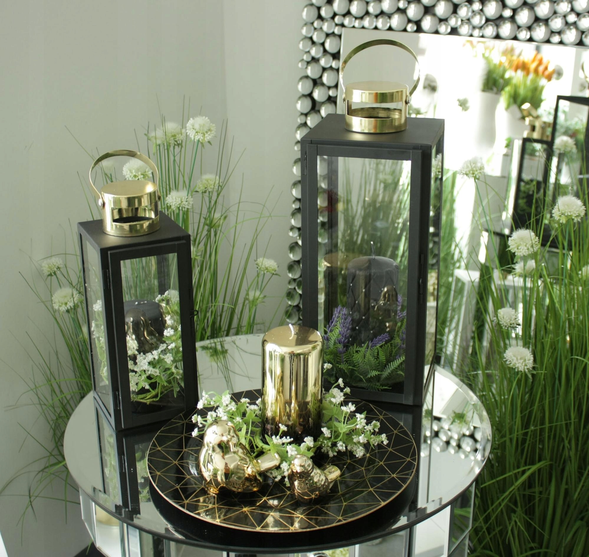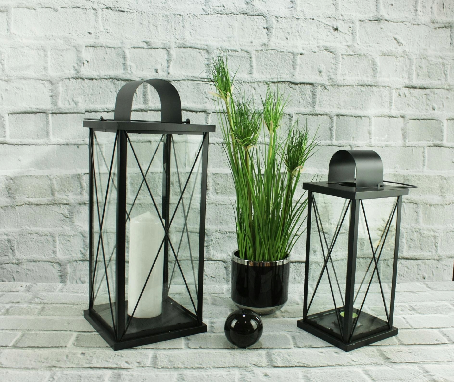 Один фонарь с двумя хрустальными шарами. Прозрачный абажур с верхним металлическим ободком. В металлическом углублении основания абажура расположена зеркальная вставка, отражающая свет, излучаемый горящей свечой, что дает дополнительный красивый осветительный эффект.