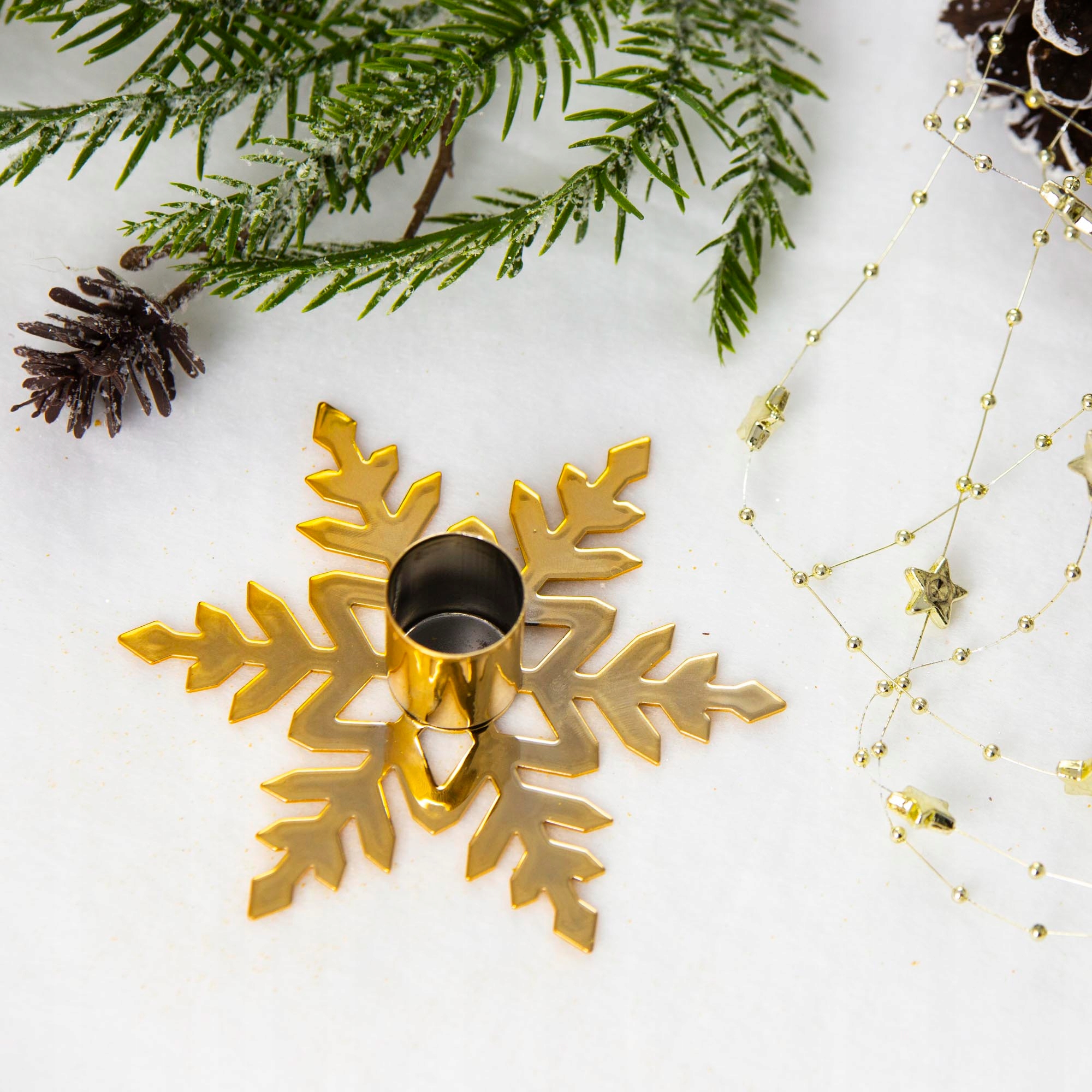 - Рождественский дизайн: Форма снежинки и золотистый цвет придают подсвечнику особенный праздничный вид, идеально подходящий для Рождества.