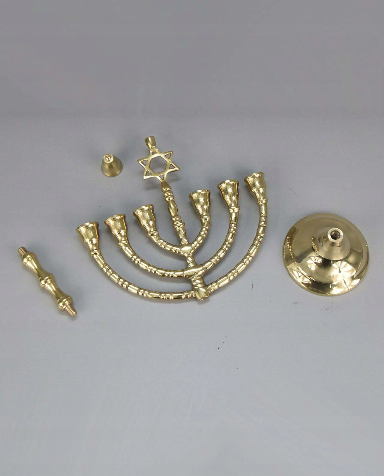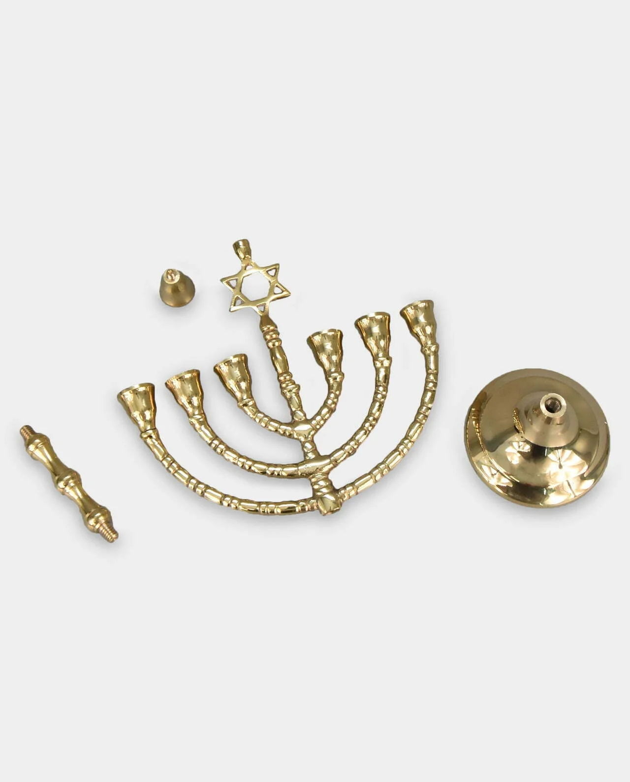 Уникальный семирожковый канделябр из полированной латуни. Красиво сделано, очень точно, с вниманием к мельчайшим деталям. Он производит большое эстетическое впечатление и имеет вневременной стиль. Подходит для многих интерьеров. Это позволяет получить атмосферный свет. Используется в церемониальных целях в еврейской культуре. Легко транспортировать благодаря возможности разборки отдельных элементов, что делает его идеальным подсвечником для путешествий.