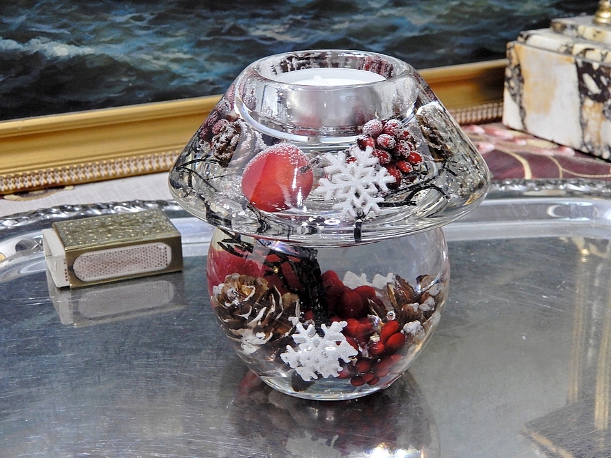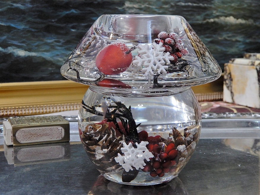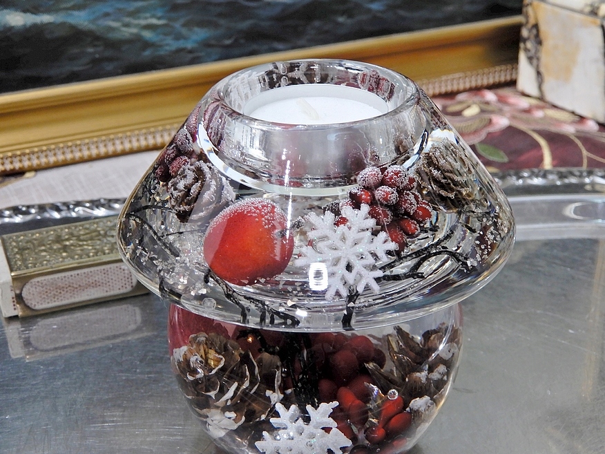 ПІДСВІЧНИК СКЛЯНИЙ ЗИМОВИЙ ГРИБ ДЛЯ СВІЧНИКІВ ПОДАРУНОК ДО РІЗДВЯНОГО СТІЛУ