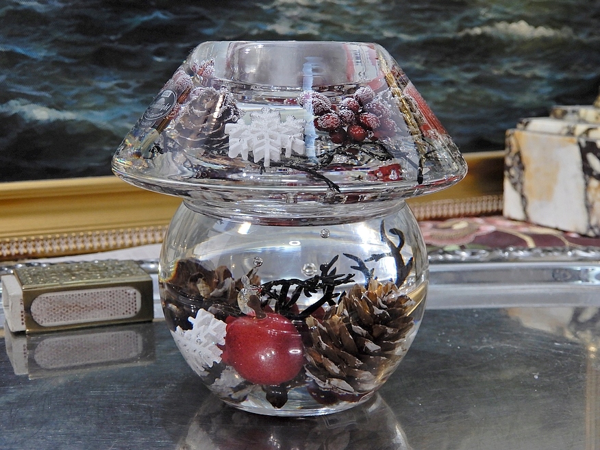 Приглашаю Вас купить красивый стеклянный подсвечник с праздничной, зимней атмосферой, заключенной в стекле.