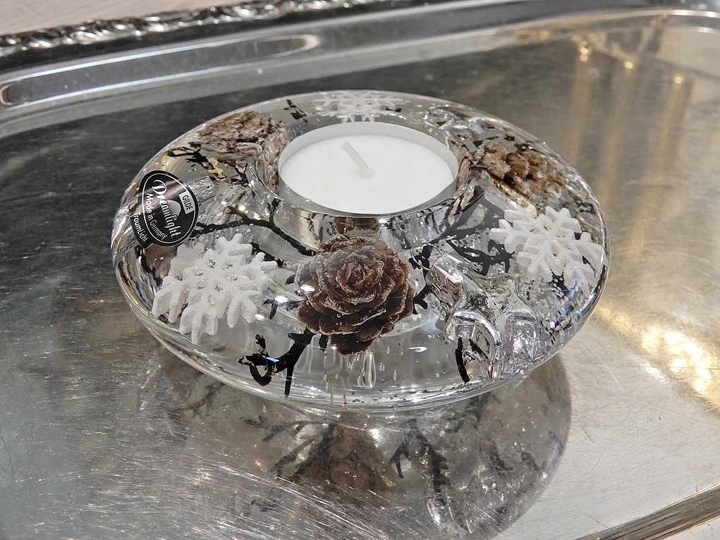 Приглашаю Вас купить красивый стеклянный подсвечник с зимней атмосферой, заключенной в стекле.
