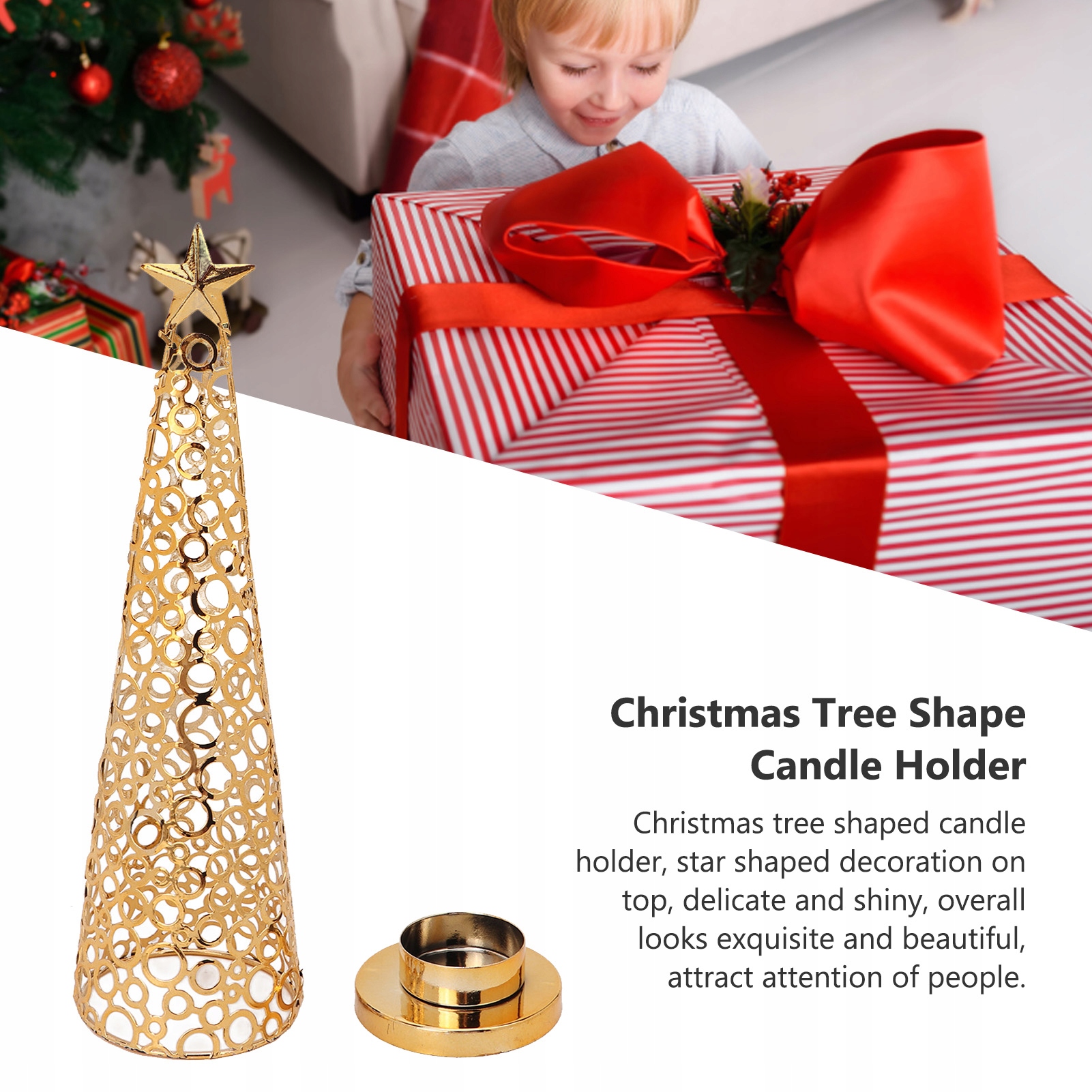 2. Изысканный внешний вид: подсвечник в форме рождественской елки, украшение в форме звезды сверху, нежный и блестящий, в целом выглядит изысканно и красиво, привлекает внимание людей.