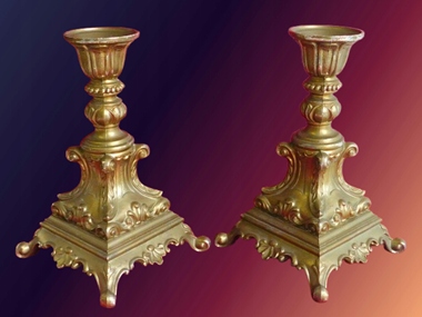 Предметом аукциона являются два подсвечника, которые видны на фото. Они были привезены из Германии и куплены в Тродельхалле для коллекционеров. Он сделан из какого-то металла - цвет напоминает латунь. Состояние как на фото - обычные признаки использования.