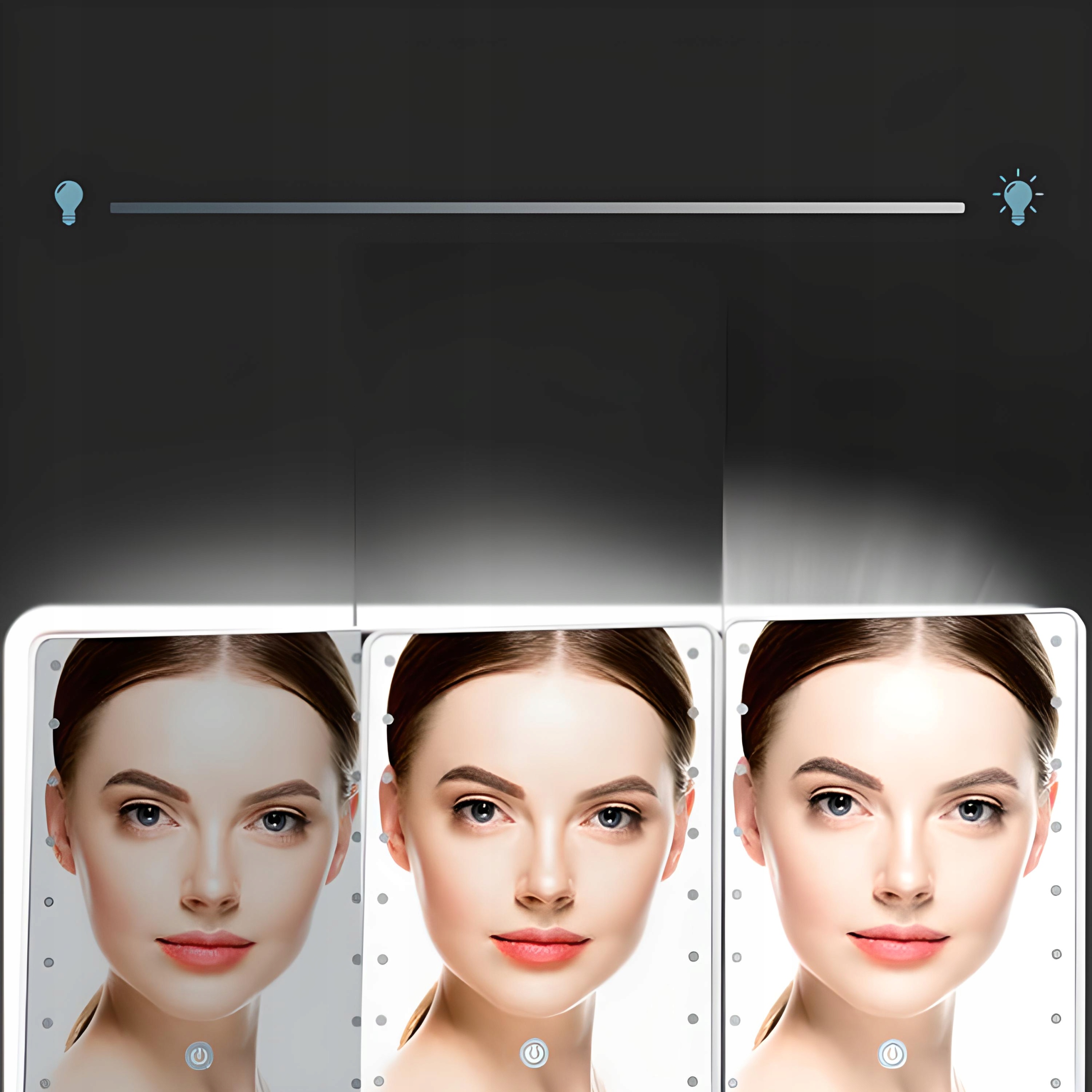 Косметическое зеркало с увеличением , оснащенным целыми светодиодами светодиодов снаружи. Светодиоды тактиль - просто щелкните в любом месте зеркала, чтобы активировать и украсить рабочее пространство, например, Во время макияжа.