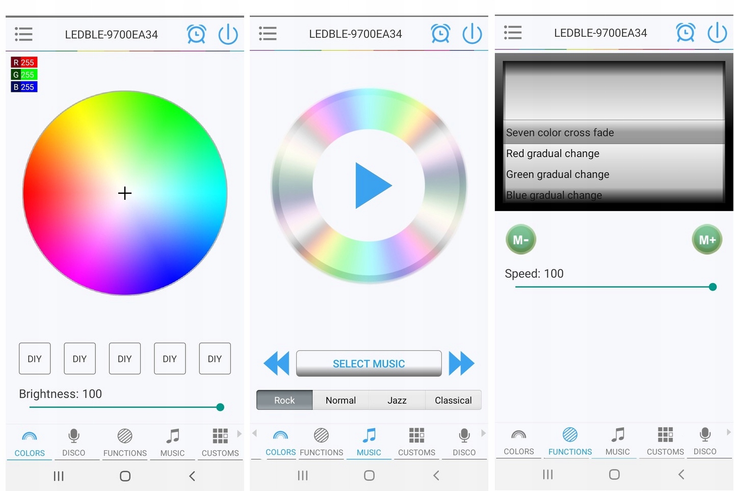 - В отличие от большинства контроллеров, мини-контроллер MEiSSA имеет встроенный музыкальный режим, который по беспроводной сети управляет освещением в ритм музыки прямо из приложения. Ленты также могут мигать в ритм музыки с помощью встроенного в телефон микрофона.