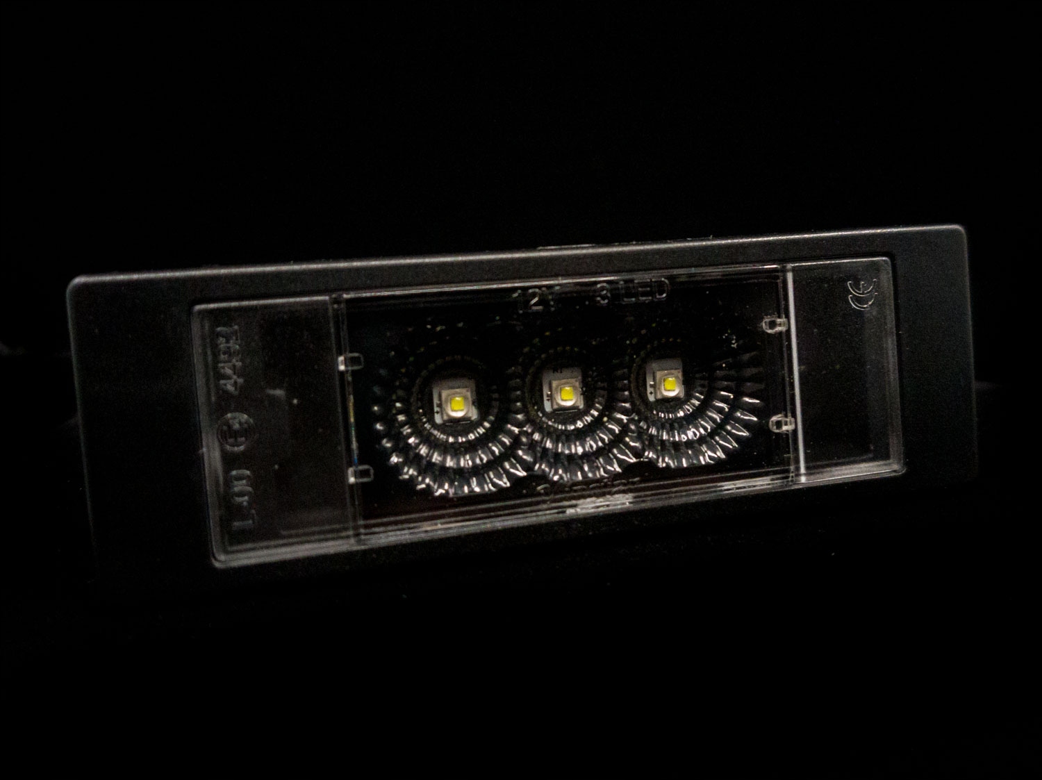 - Встроенные 3 диода CREE, встроенные в отражатели, обеспечивают красивый эффект освещения номерного знака.