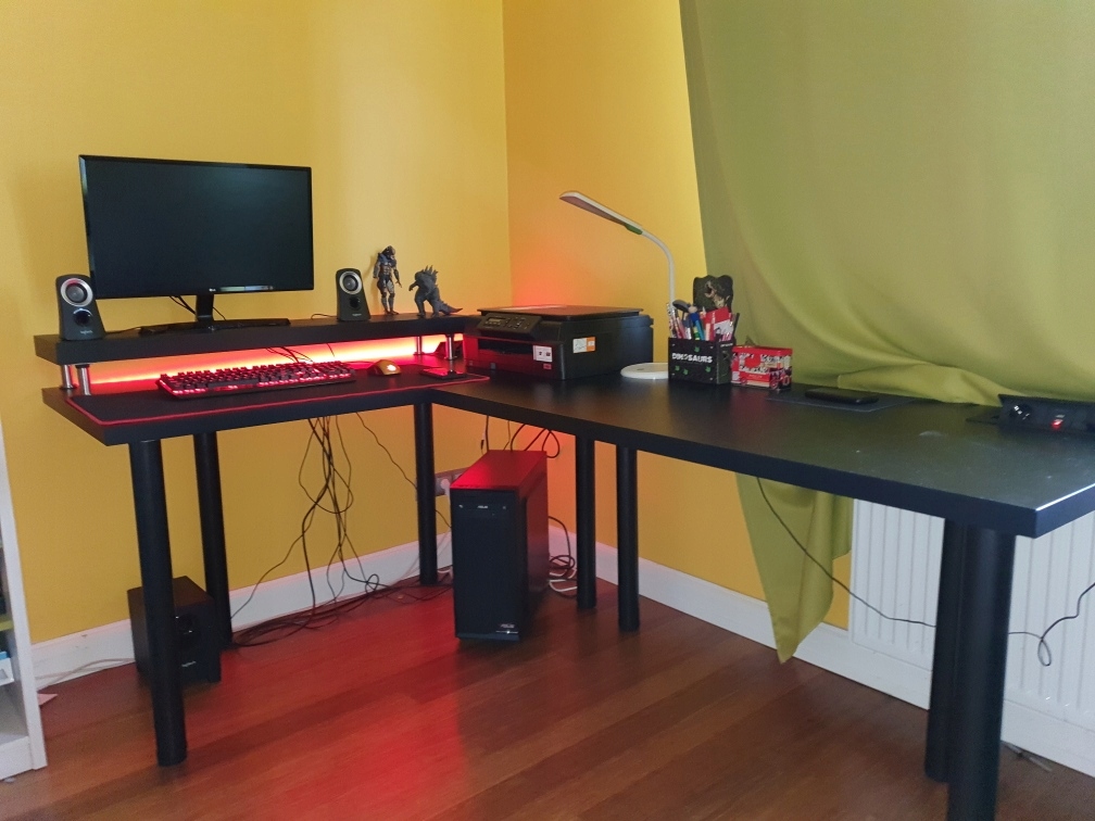 - Благодаря приподнятой конструкции под ней можно спрятать мелкие вещи (клавиатуру, блокнот)