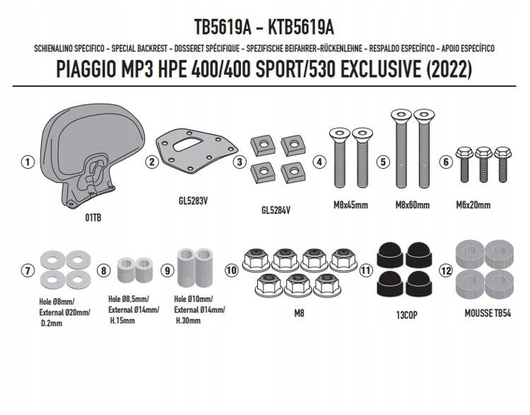 Каппа KTB5619A поддержка пассажиров - Piaggio