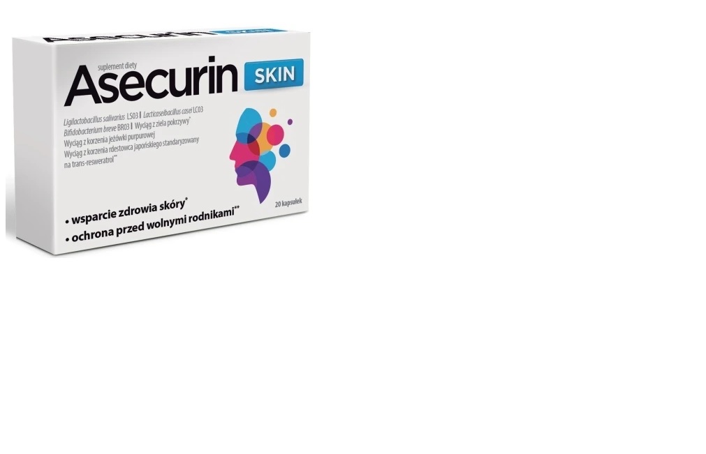 Асекуринская кожа содержит смесь штаммов пробиотических бактерий (migilactobacillus salivarius ls03, lacticaseibacillus casei lc03, bifidobacterium breve br03) Крапивая трава, корневая экстракт фиолетовых эхинхантов, японский корневой экстракт завязки). Антиоксидант, благодаря которому он поддерживает защиту клеток от окислительного стресса