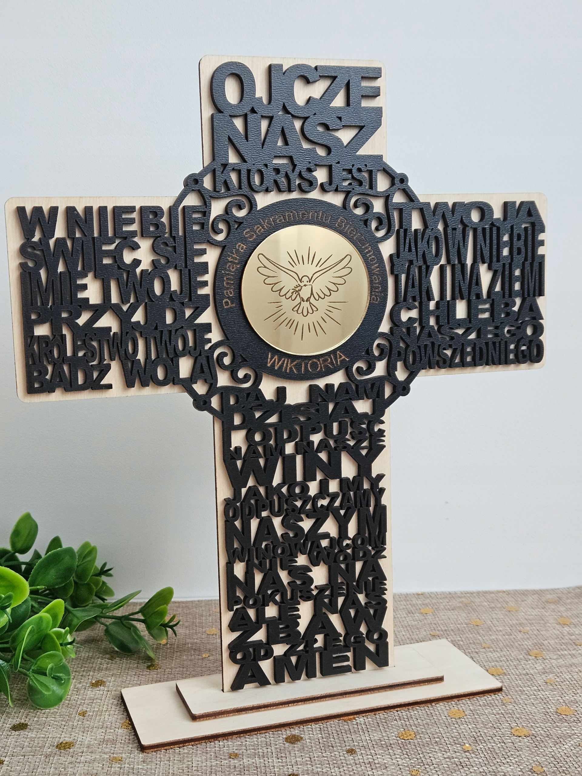 крест, сделанный с использованием лазерного метода с HDF, основанием и фоном, изготовленным из 3 -миллиметровой фанеры и золотого плексигласа в середине креста с гравированным голубем. h2>
