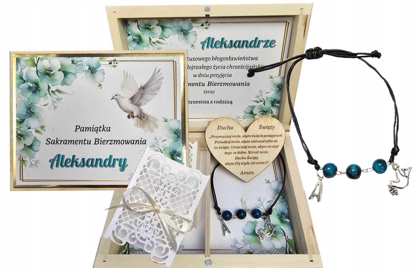 - Деревянное сердце с молитвой в Святой Дух