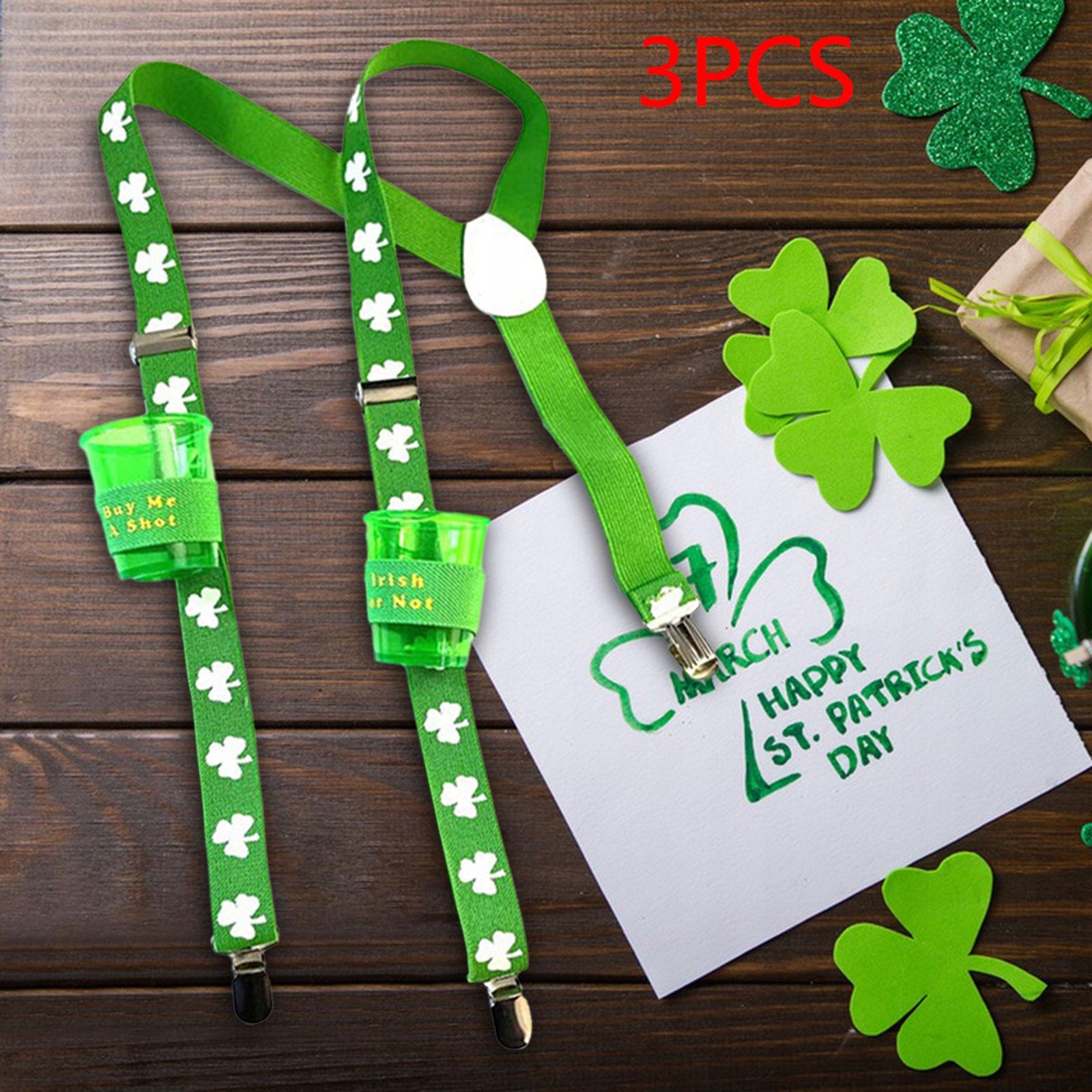 Подтяжки ко Дню Святого Патрика, аксессуар для одежды с 3 зажимами, регулируемый.