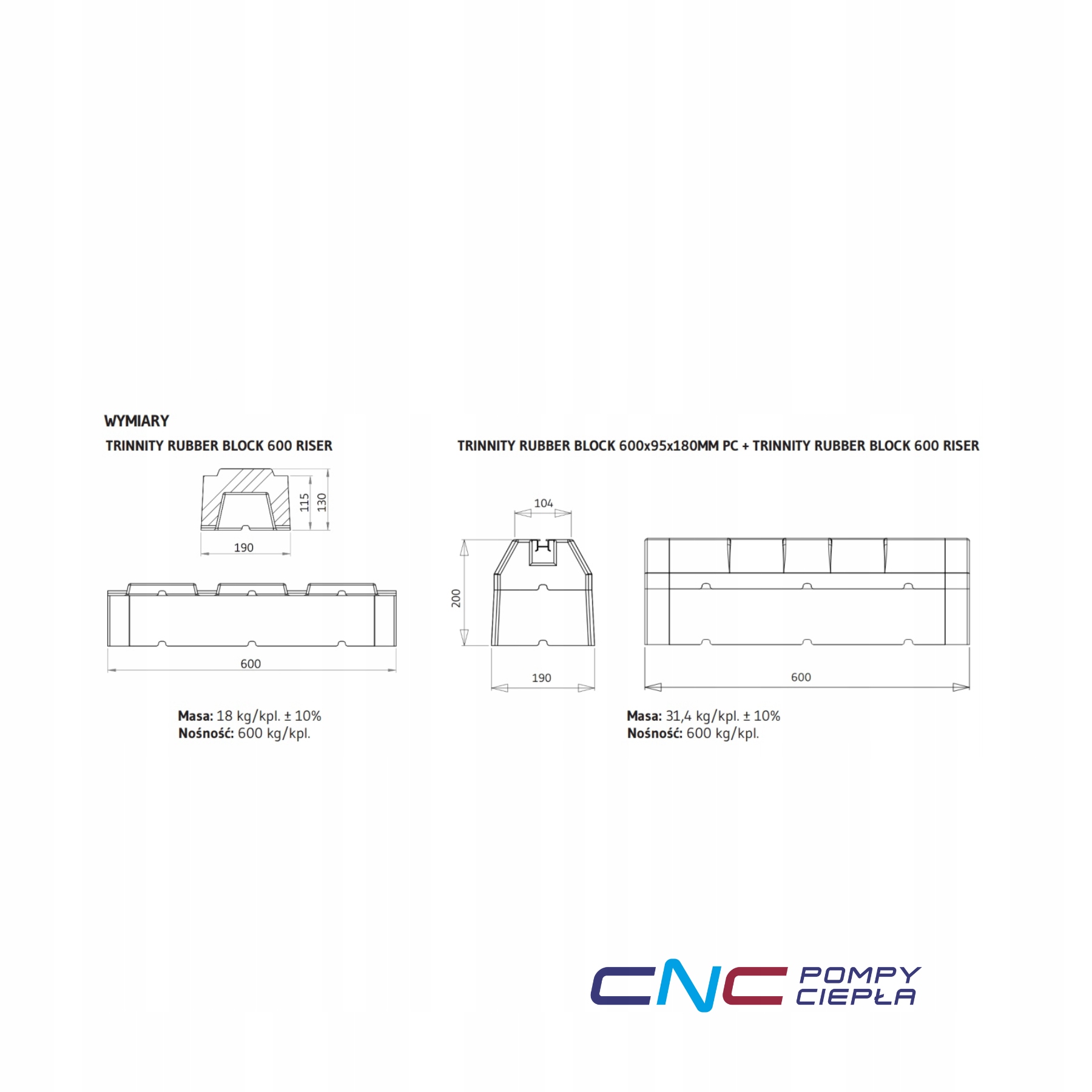 TRINNITY RUBBER BLOCK 600 RAISER RAISE TRKRB600PCPD