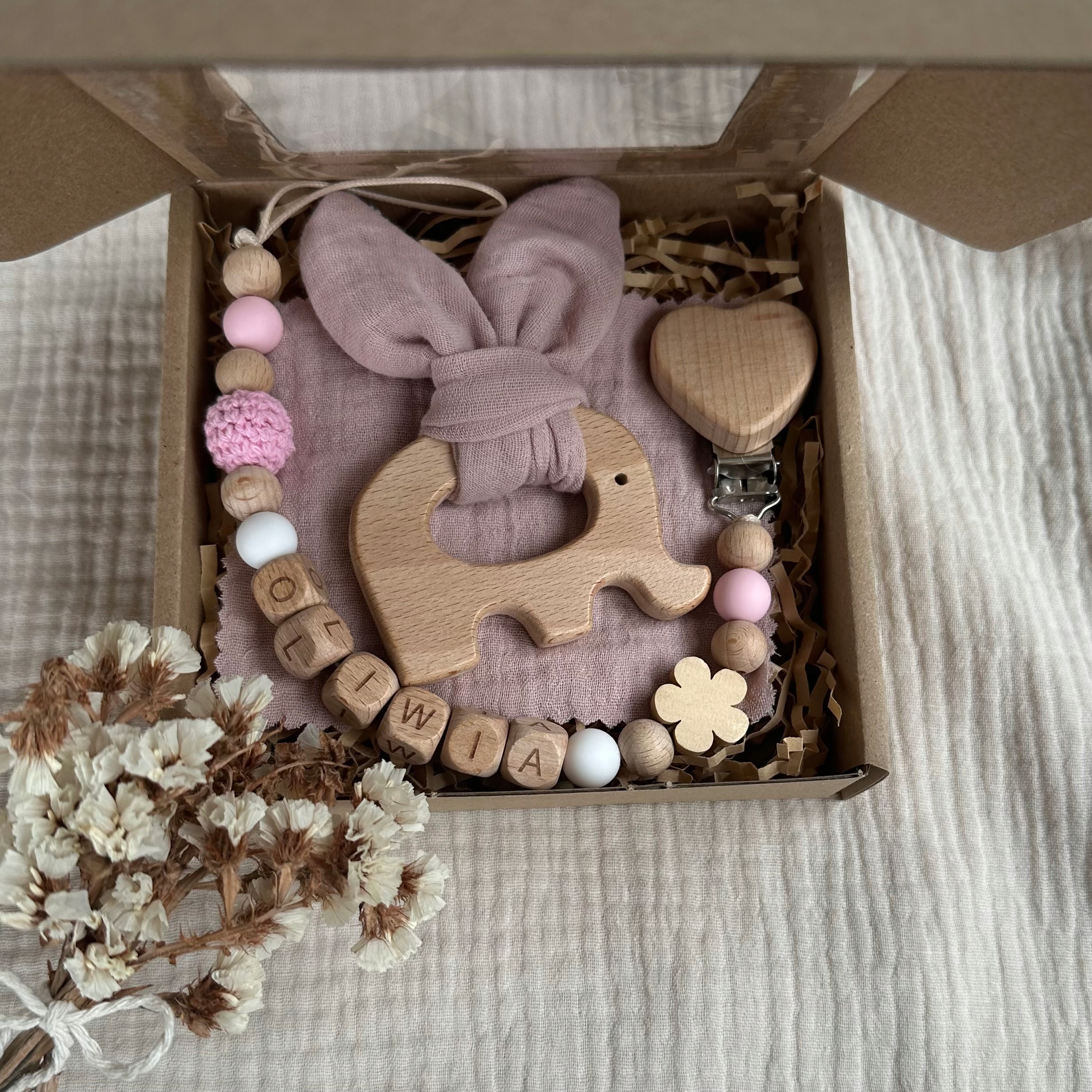 Деревянная подвеска-пустышка + прорезыватель с ушками - набор ручной работы