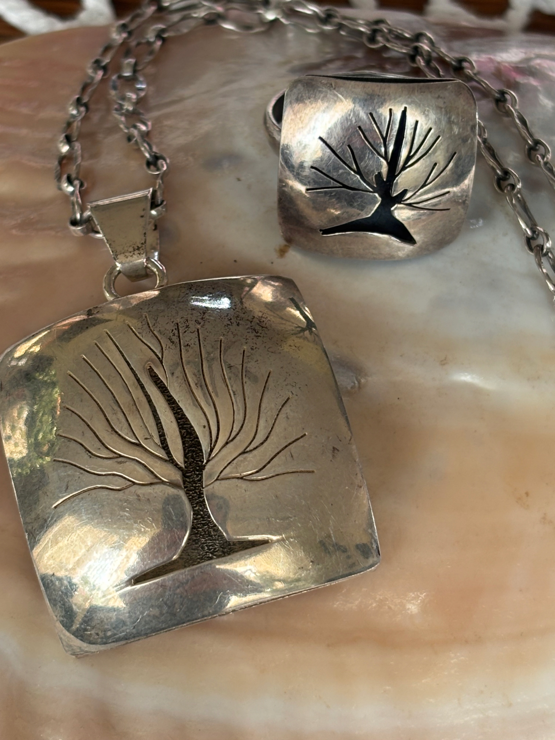 Подвесная подвесная старая серебряная большая часть дерева набор