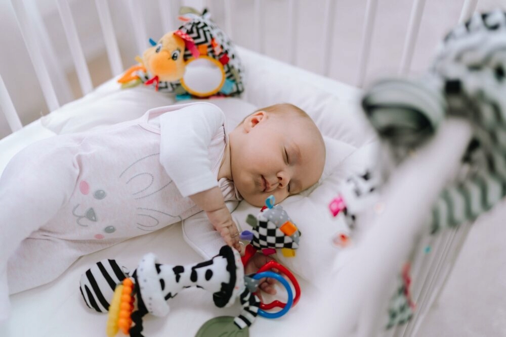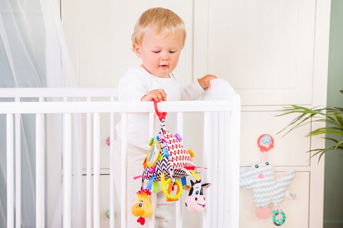 Колоколы спрятаны в головах животных, в то время как стены пирамиды украшены контрастными узорами, которые стимулируют чувство зрения со дня рождения.
