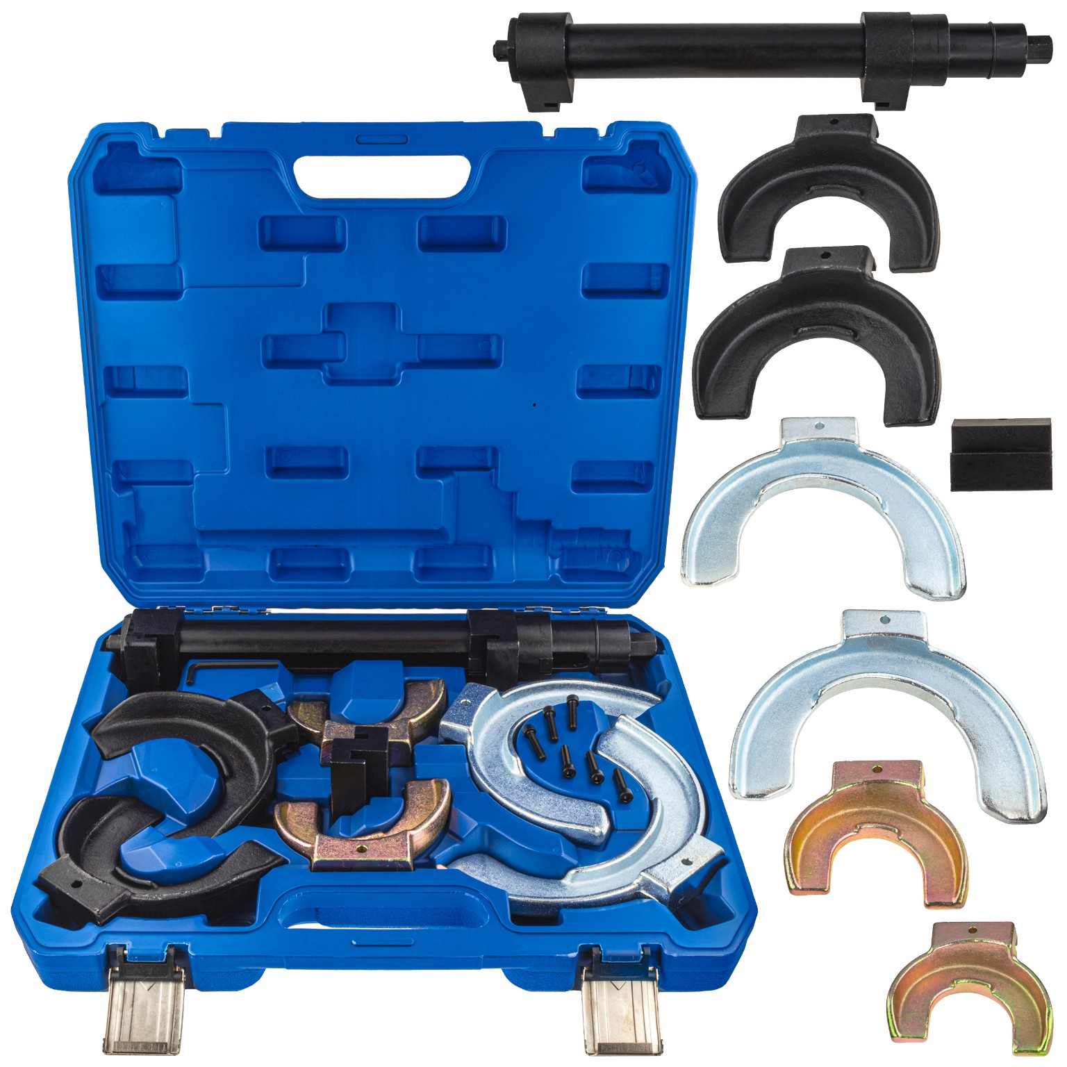 Приспособление предназначено для демонтажа автомобильных амортизаторов и его основной задачей является сжатие пружин в стойках McPherson. Поскольку количество пружин в стойках McPherson продолжает увеличиваться, инструмент включает в себя три пары захватов, которые почти полностью охватывают диапазон доступных стоек McPherson. В комплект также входит проставка для конических пружин, расширяющая диапазон применения съемника. При проектировании этого устройства были учтены мощные силы, необходимые для снятия пружин амортизатора, и риск травмирования пользователя. Поэтому все захваты в комплекте имеют увеличенные края для более надежного захвата пружин, что предотвращает выскальзывание пружины и травмирование оператора во время технического обслуживания. Рекомендуемая нагрузка на инструмент — 9000 Н. Максимальная нагрузка на инструмент — 37 000 Н. Инструмент упакован в устойчивый к повреждениям чемодан, что обеспечивает более удобную и быструю транспортировку.