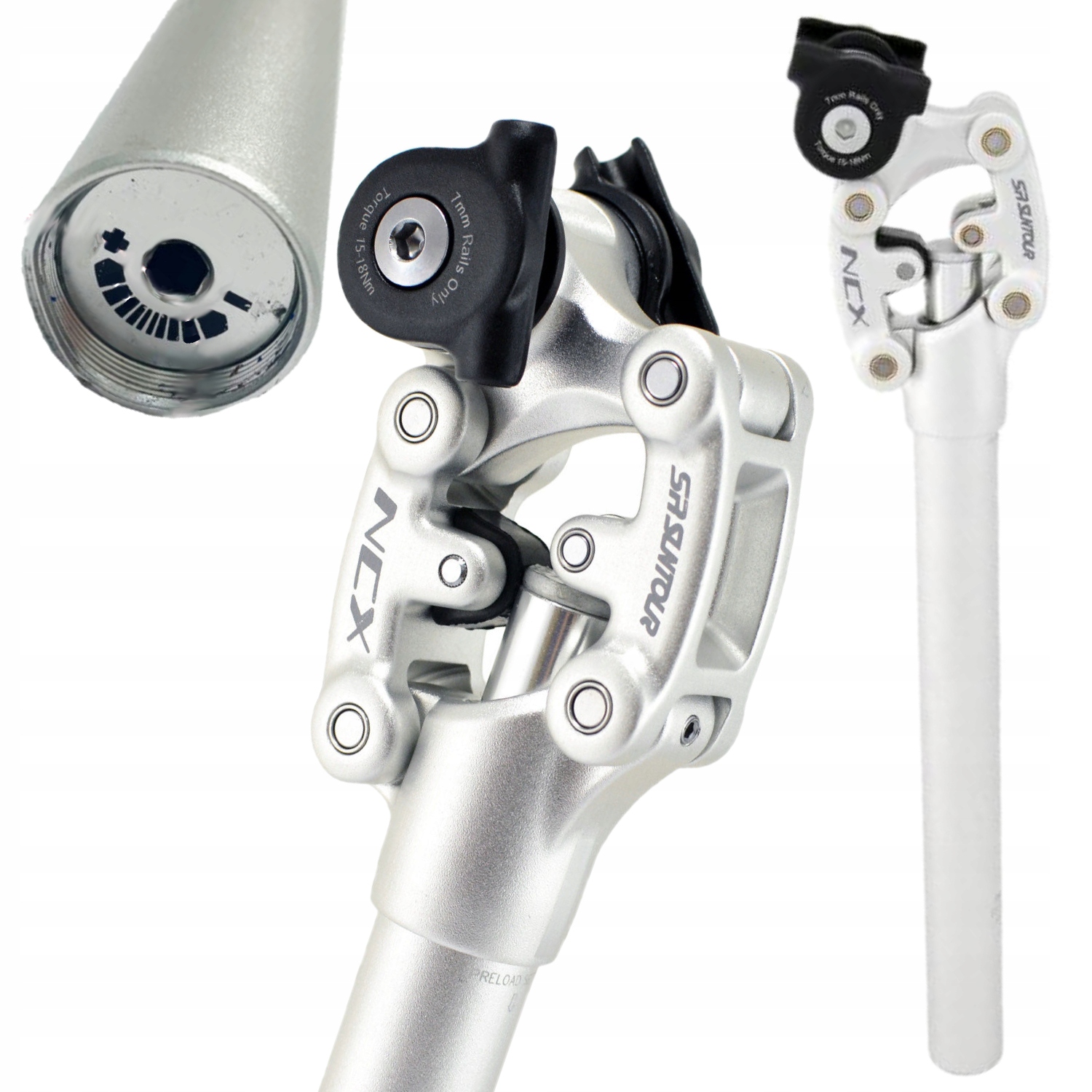 ➡️ Подседельный штырь работает по принципу движущегося параллелограмма, который перемещается по штифтам, перемещая седло всадника назад и вниз. Это не влияет на силу педалирования, поскольку расстояние от ноги до педали меняется благодаря особой конструкции рокера. В более дешевых решениях, в которых не используется пантограф, при движении подседельного штыря вниз это расстояние сокращается и приводит к потере энергии педали.