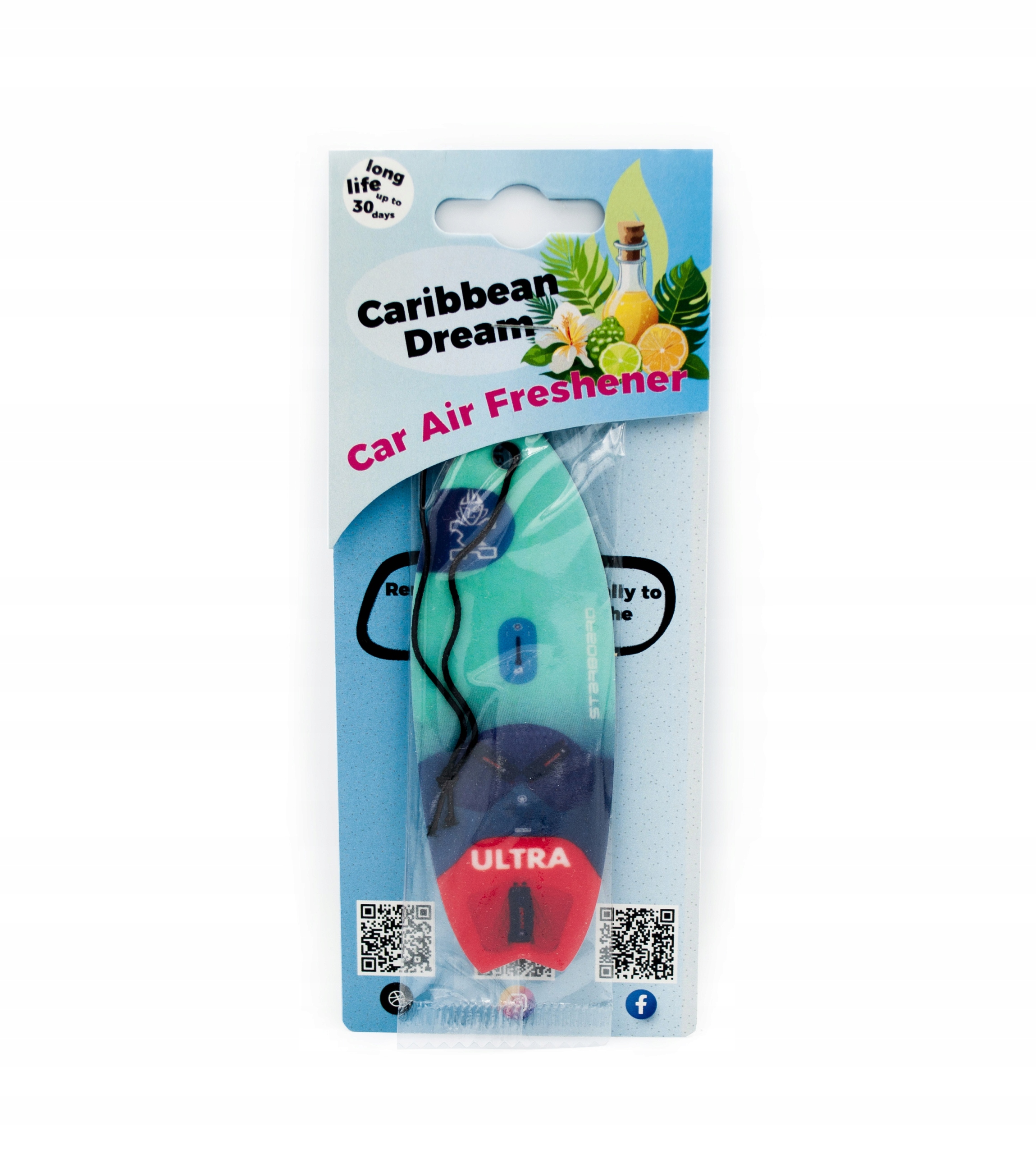 Ароматная подвеска Starboard Ultra Caribbean Dream идеальна. способ освежить салон вашего автомобиля! Его неповторимый аромат отвезет вас на тропические пляжи, где светит солнце и дует ветер нежно ласкает кожу. Благодаря этому каждая поездка состоится удовольствие, и даже самый длинный маршрут станет вкуснее. Кулон не только стильный, но и эффектный - надолго. выделяет приятный аромат, создавая приятную атмосферу в вашем автомобиле. Вы любите открывать для себя новые места? Повесьте правый борт в автомобиль и пусть тропический аромат сопровождает вас каждый раз путешествуйте!