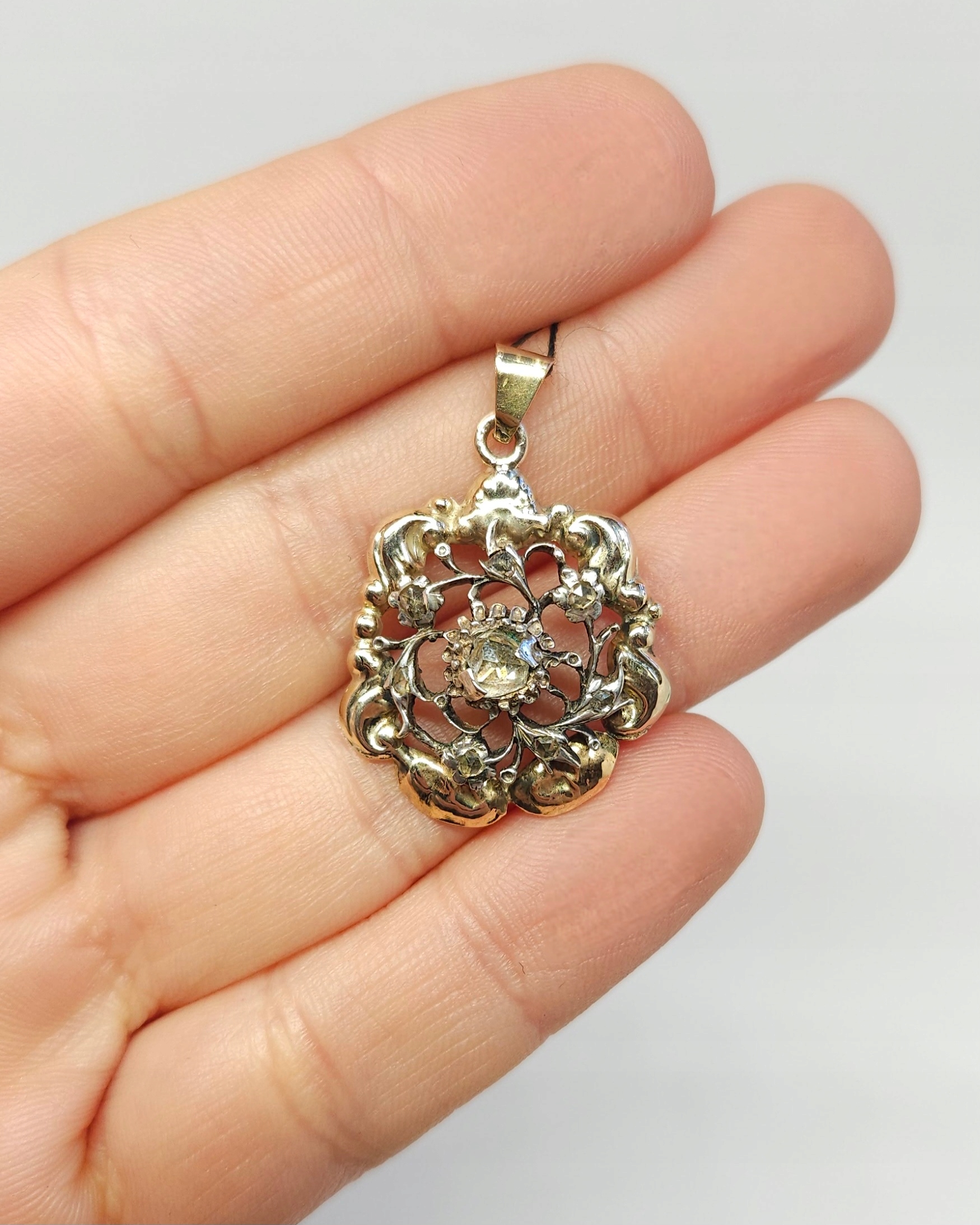 Подвеска с бриллиантовыми розетками 19 -го века, Gold Pr. 0,500 Openwork Silver